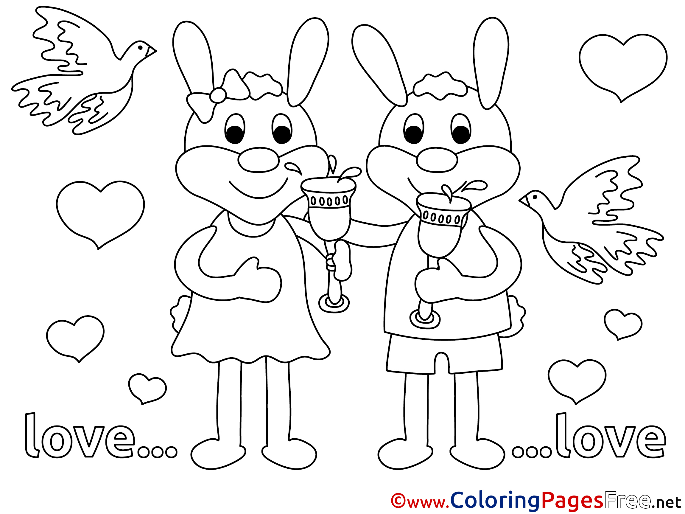 Rabbits Wedding printable Love Coloring Sheets