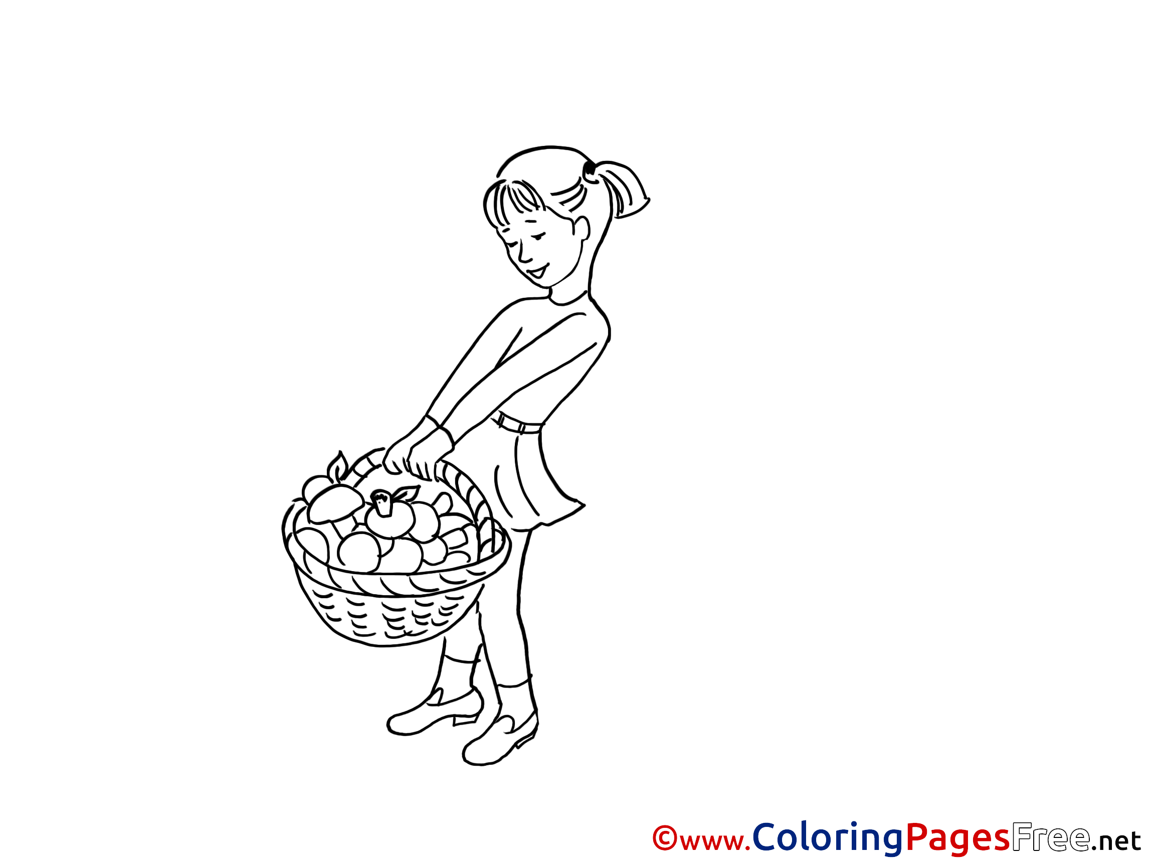 Basket with Mushrooms free Colouring Page download Girl