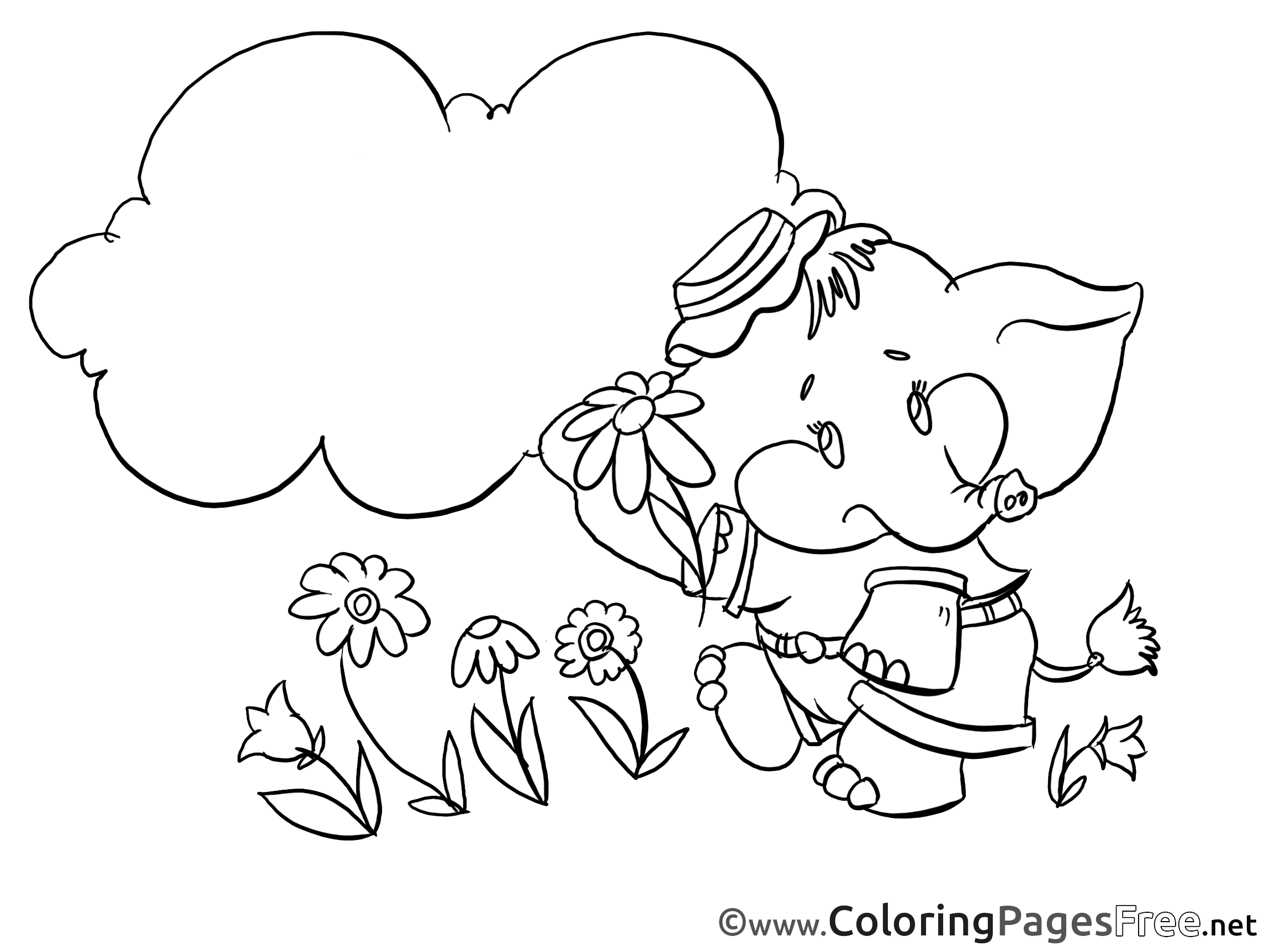 Title of Coloring Sheet: Elephant in Grass for free Coloring Pages download