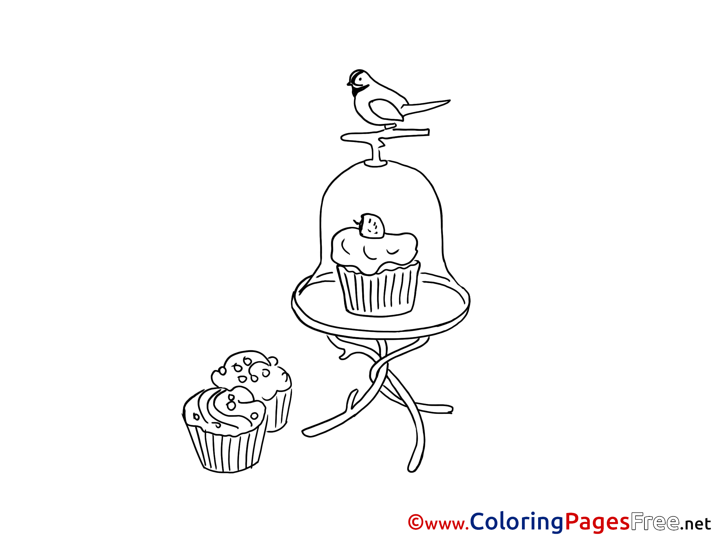 Title of Coloring Sheet: Bird Cakes Children download Colouring Page
