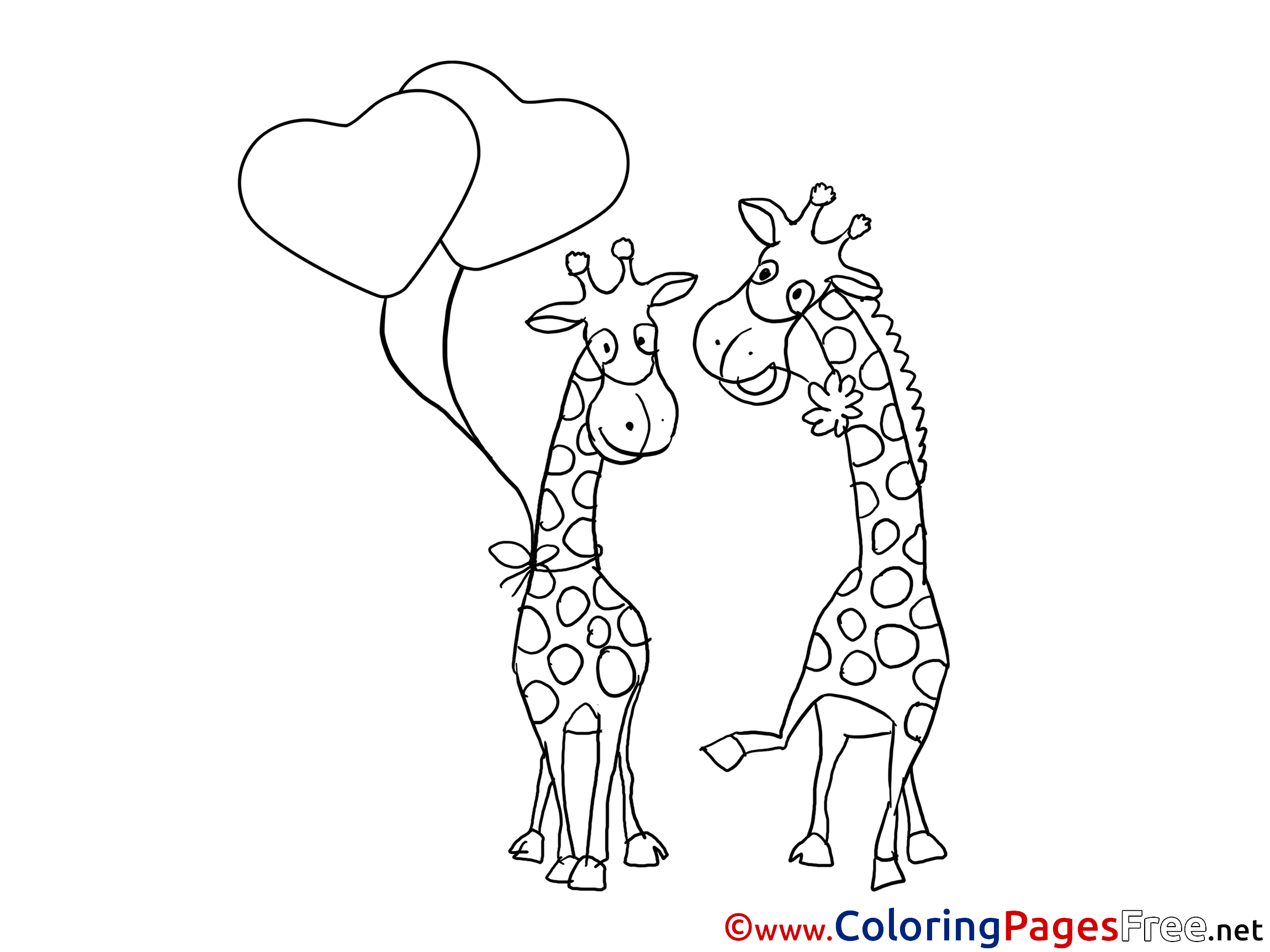 Title of Coloring Sheet: Giraffes in Love Colouring Page printable free