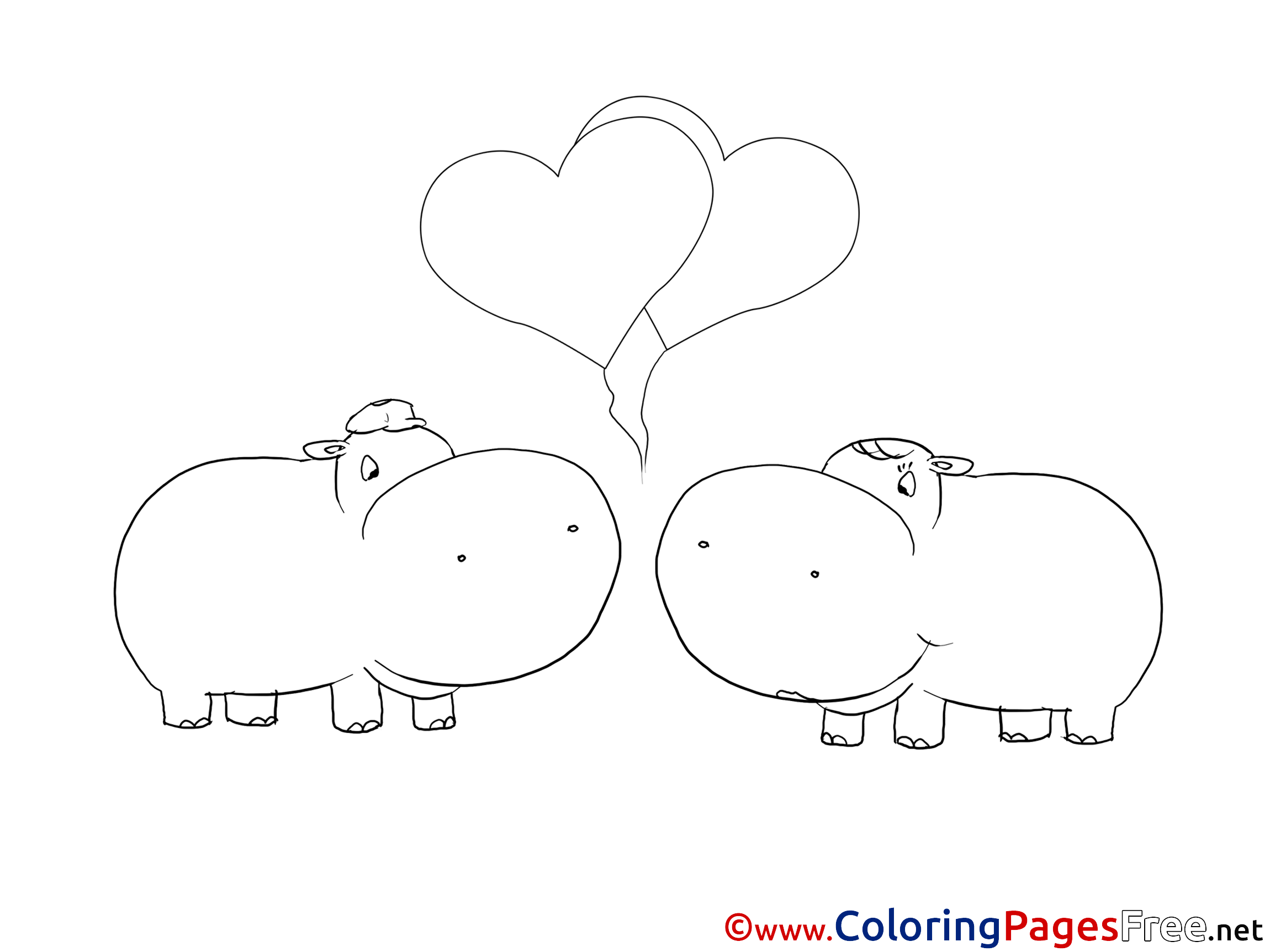 Title of Coloring Sheet: Hippos in Love free Colouring Page download