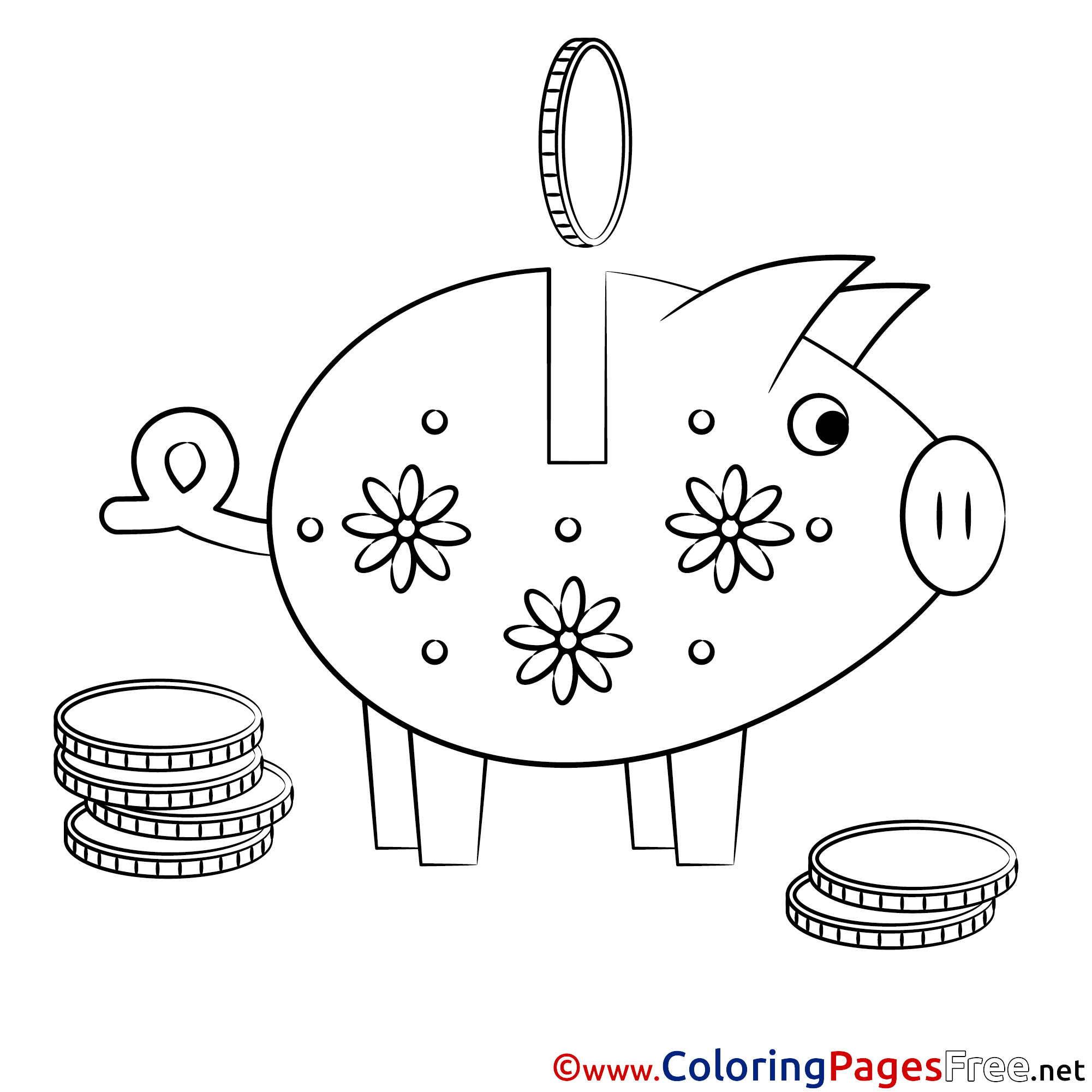 Title of Coloring Sheet: Piggy Bank download Colouring Sheet free