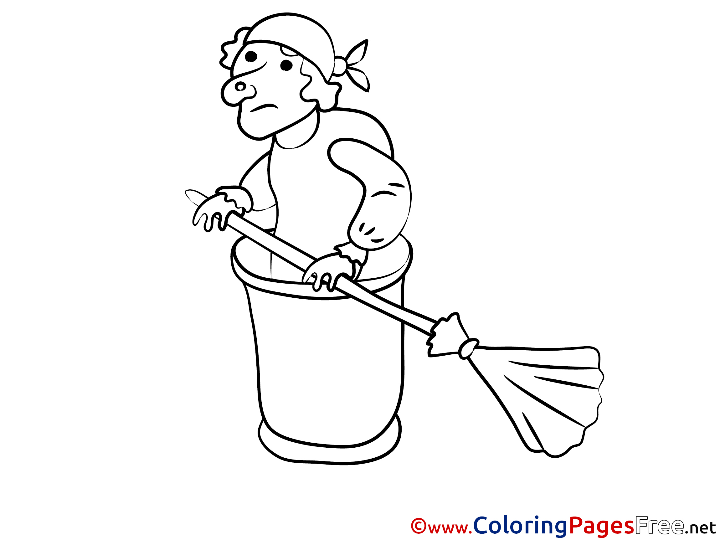 Title of Coloring Sheet: Witch with Broom for Kids printable Colouring Page