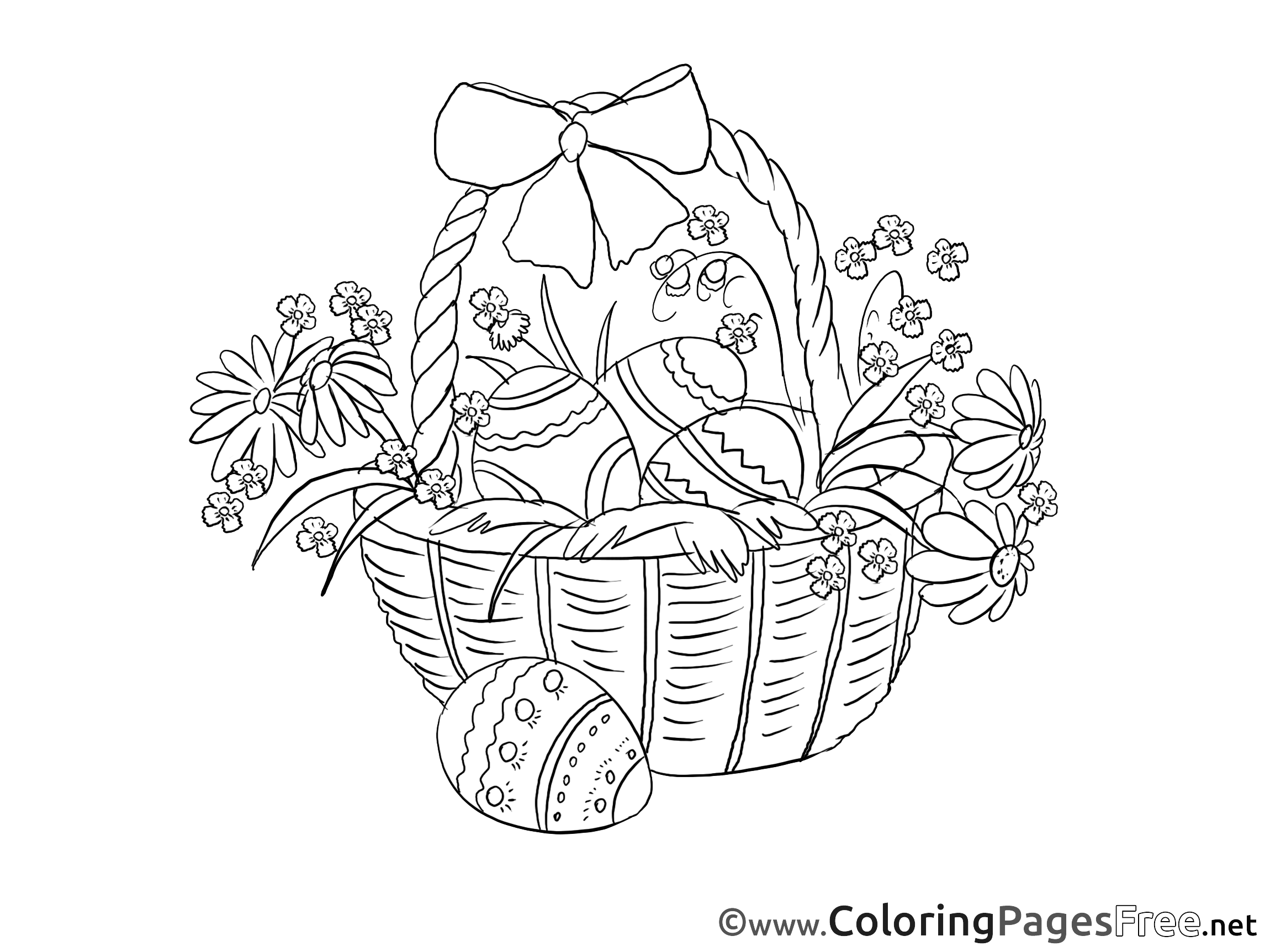 Title of Coloring Sheet: Basket with Eggs Children Easter Colouring Page