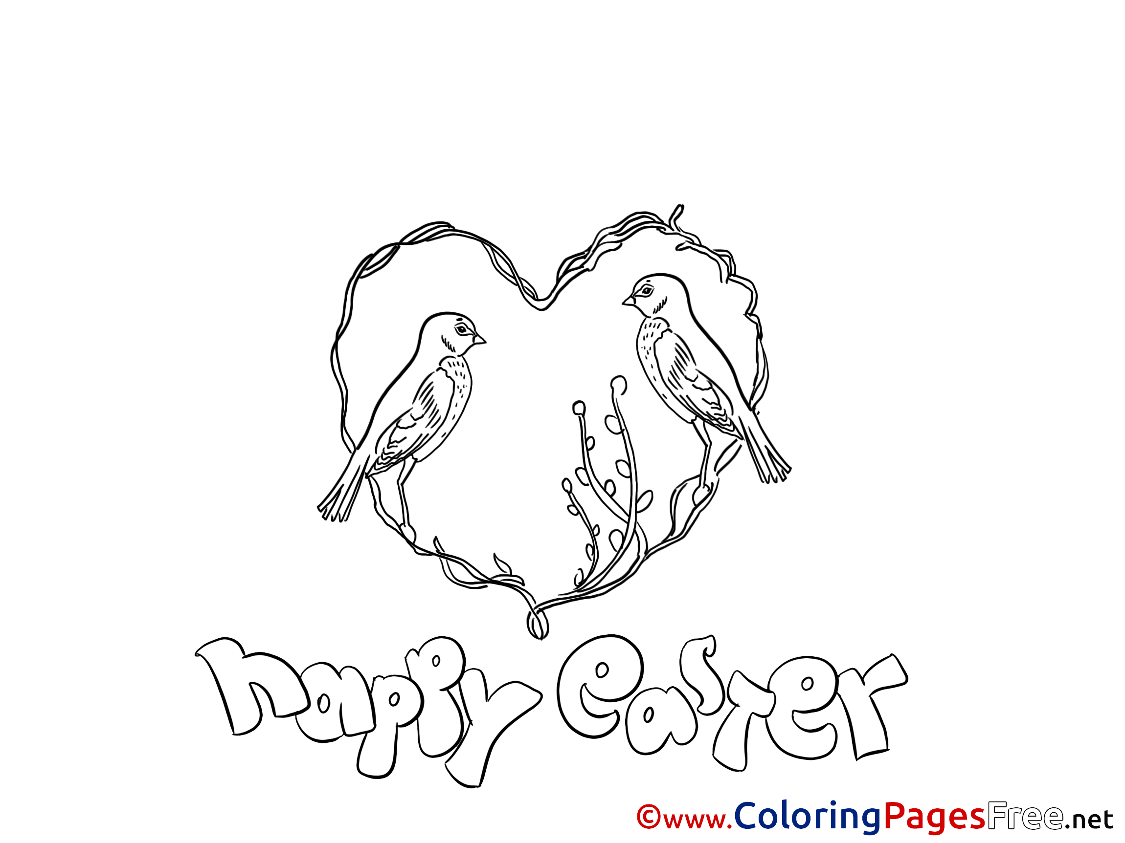 Title of Coloring Sheet: Birds in Heart free Colouring Page Easter