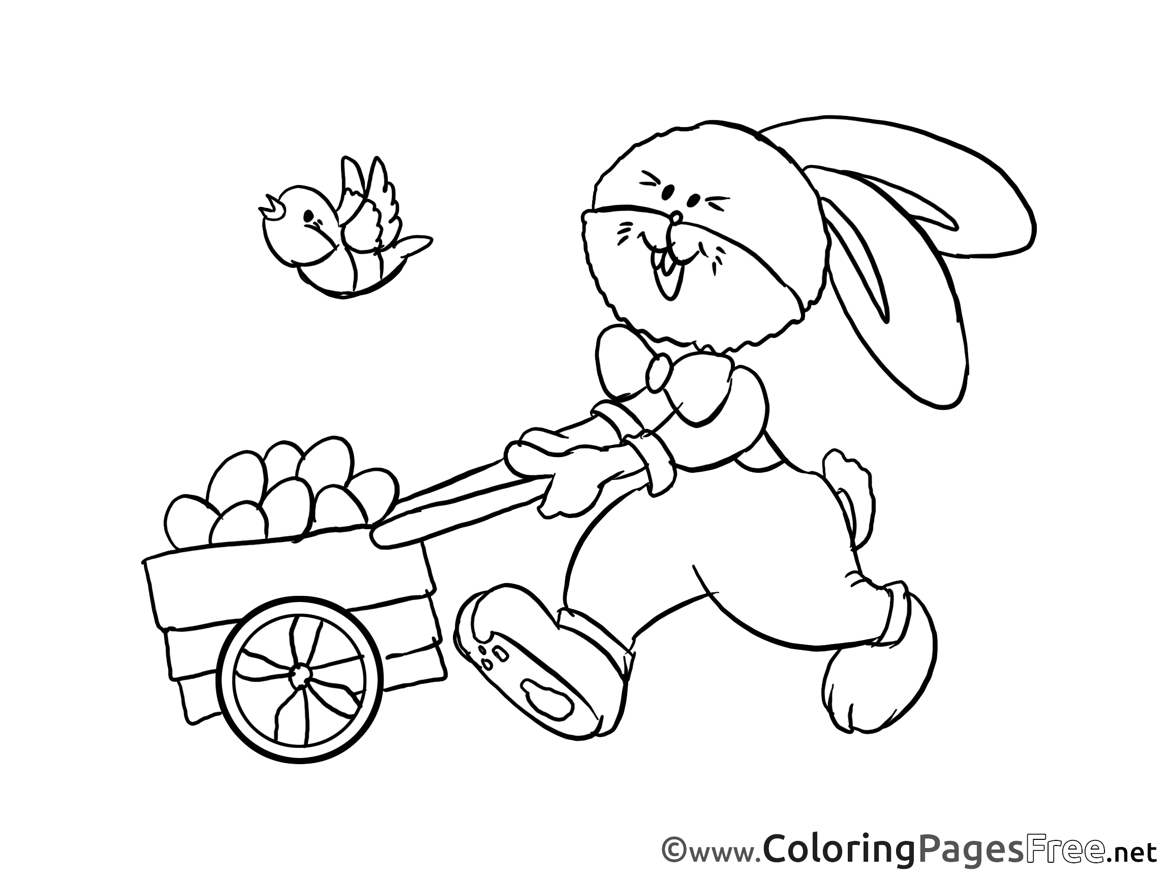 Title of Coloring Sheet: Cart Bunny for Kids Easter Colouring Page