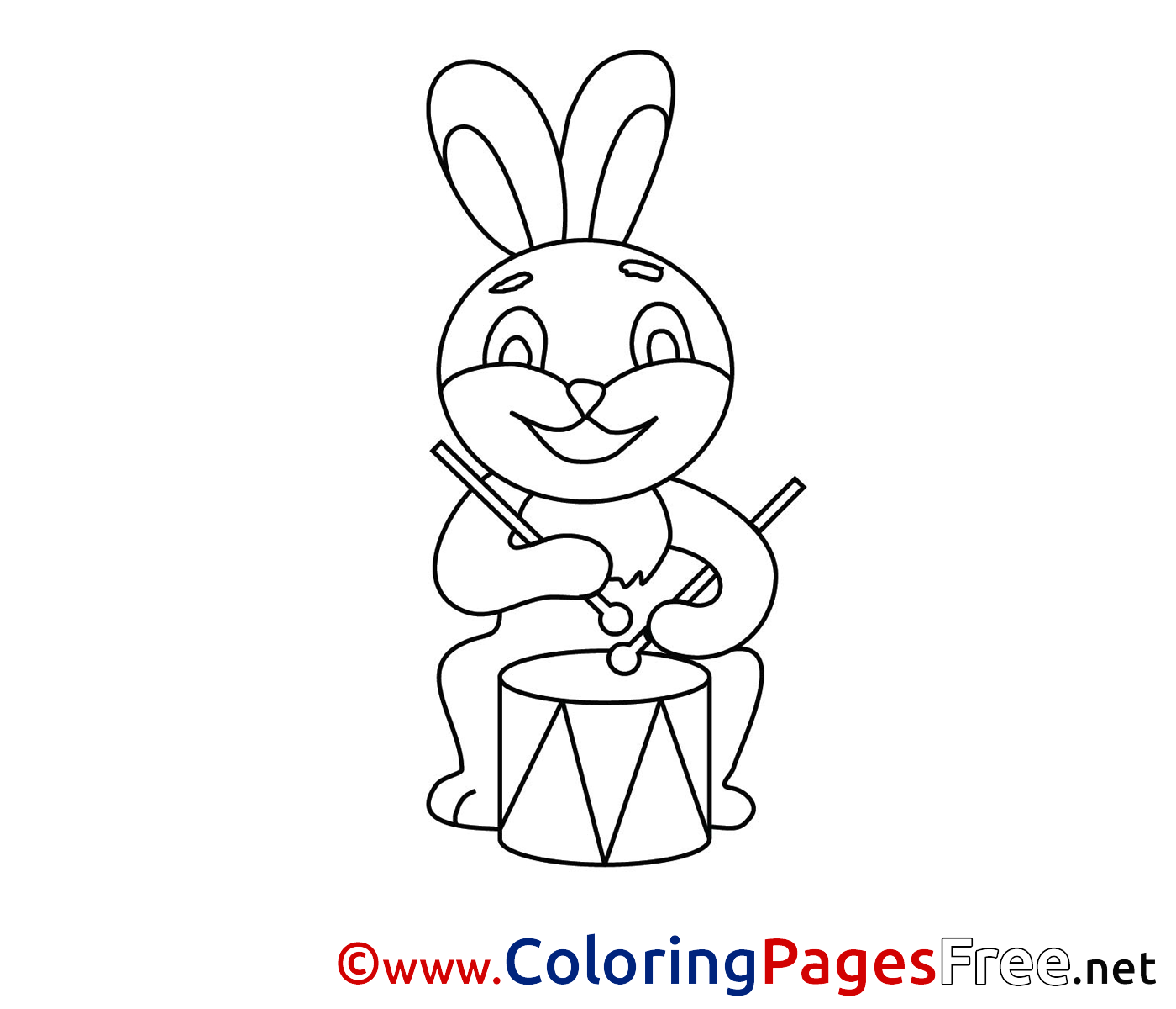 Original-Bild: Drum Hare for Kids Easter Colouring Page