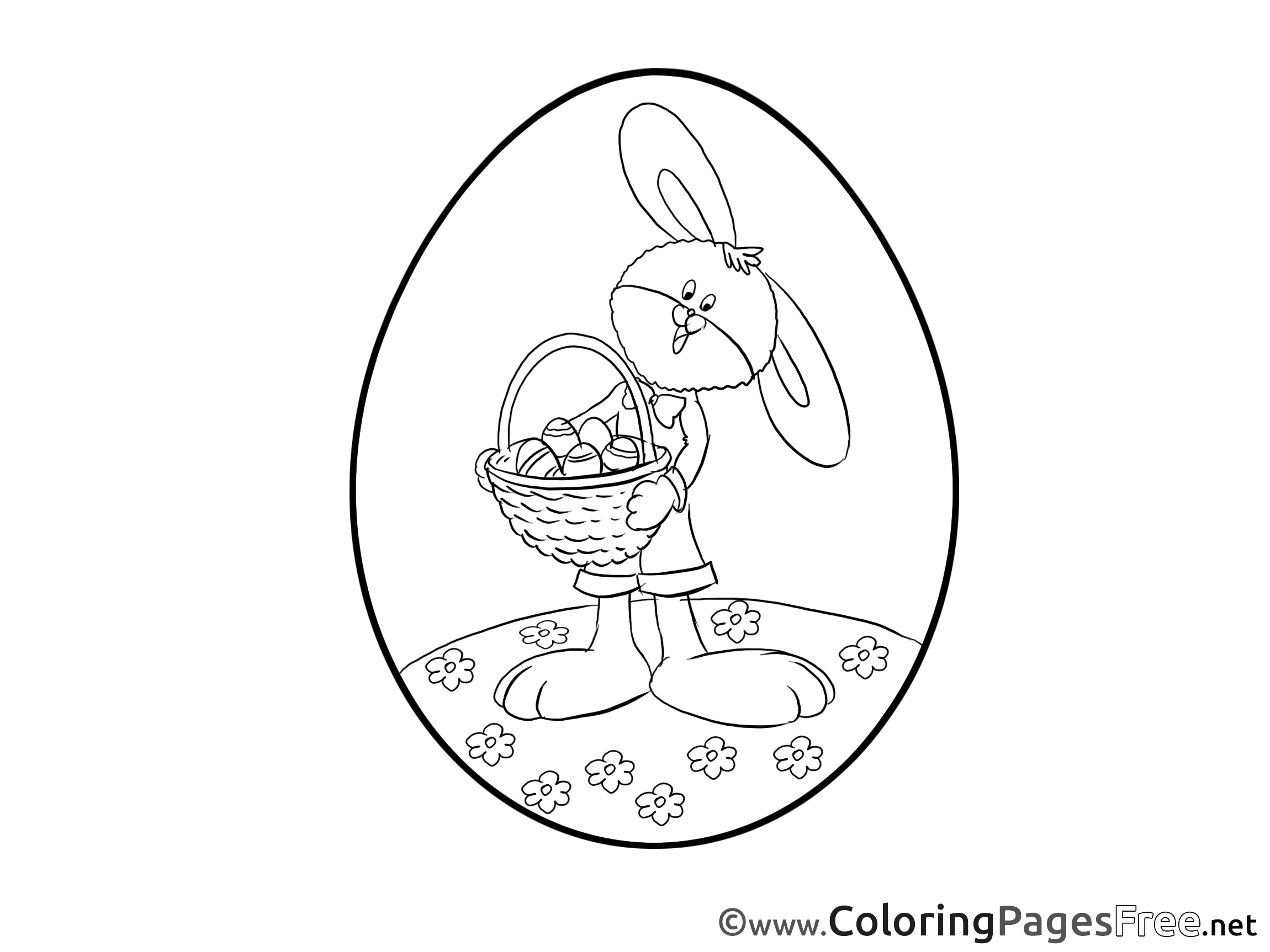 Hare with Basket Kids Easter Coloring Pages