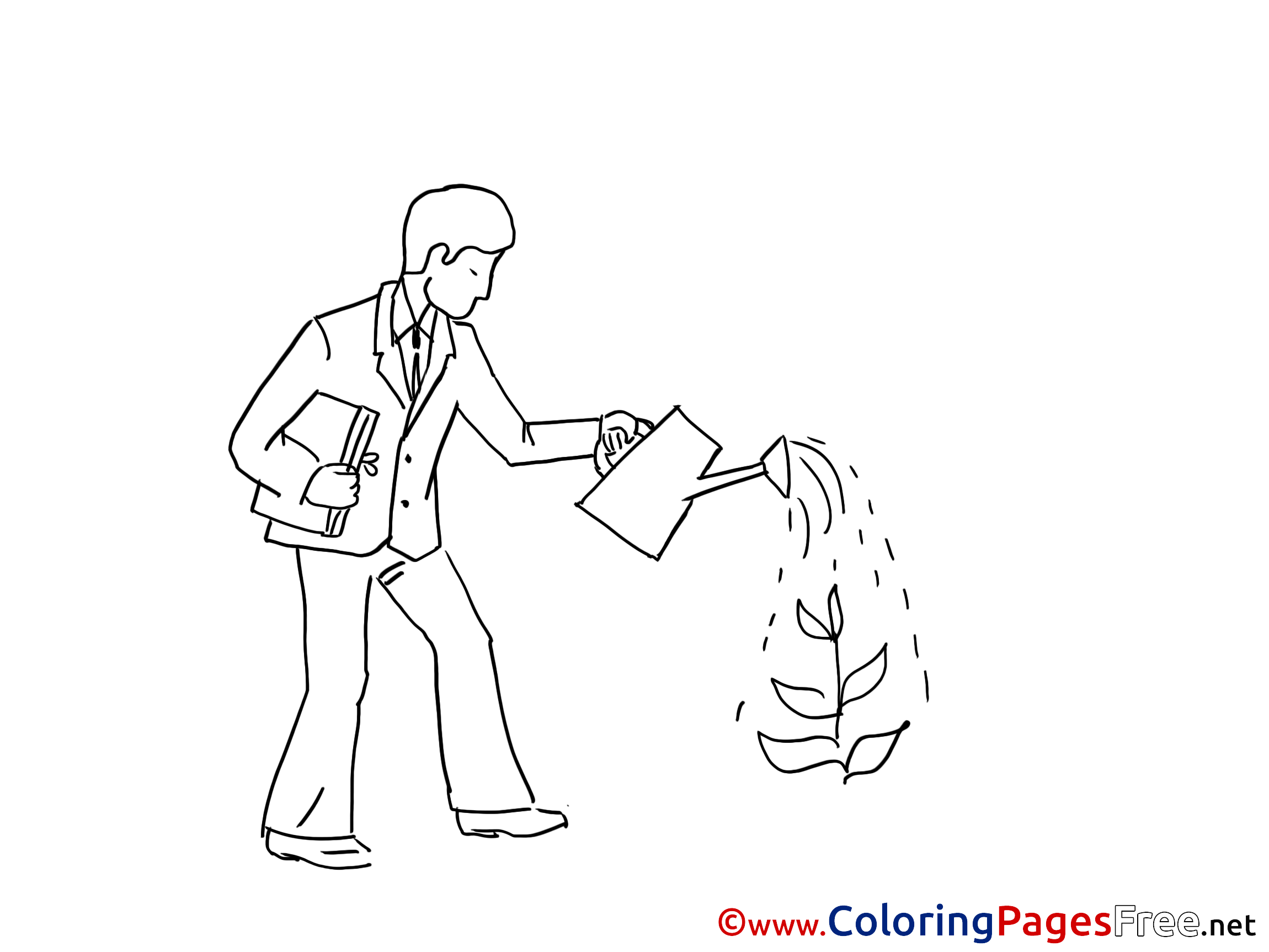 Title of Coloring Sheet: Job Man pours Plant printable Coloring Sheets download