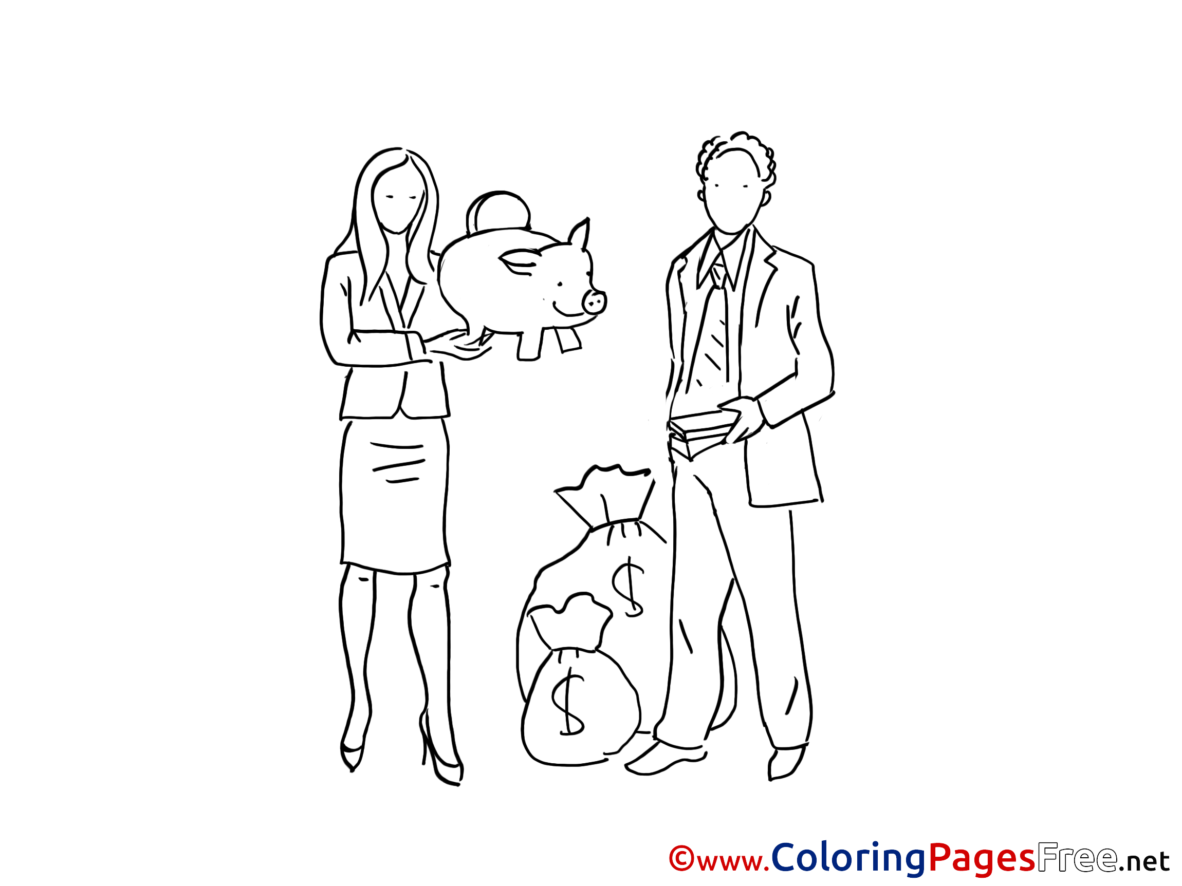 Title of Coloring Sheet: Piggy Bank Money Kids free Coloring Page