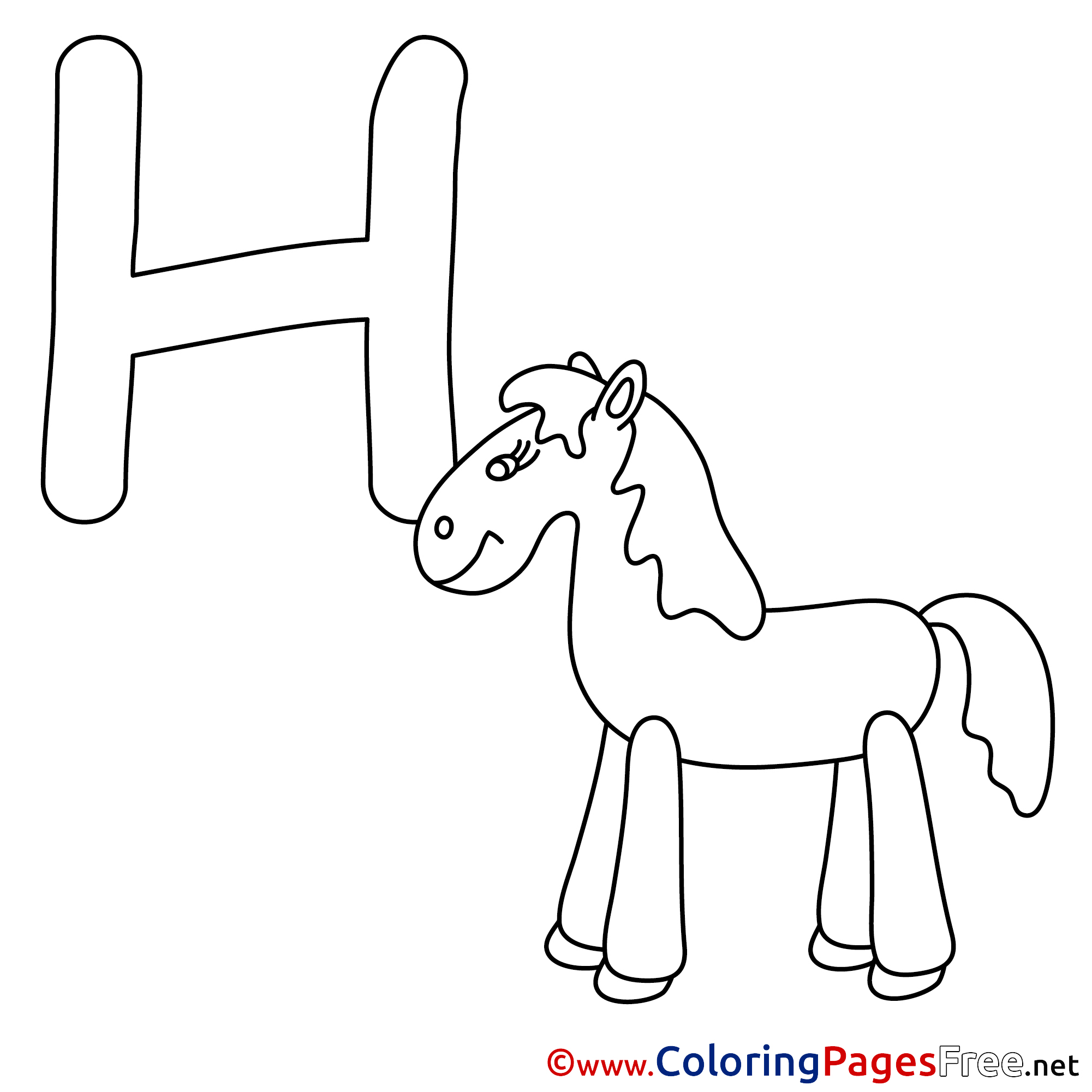 Title of Coloring Sheet: Horse download Alphabet Coloring Pages