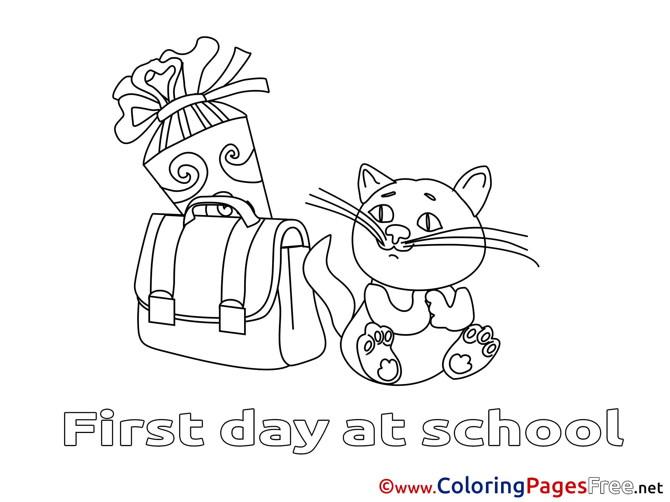Cat free Colouring Page download Schoolbag