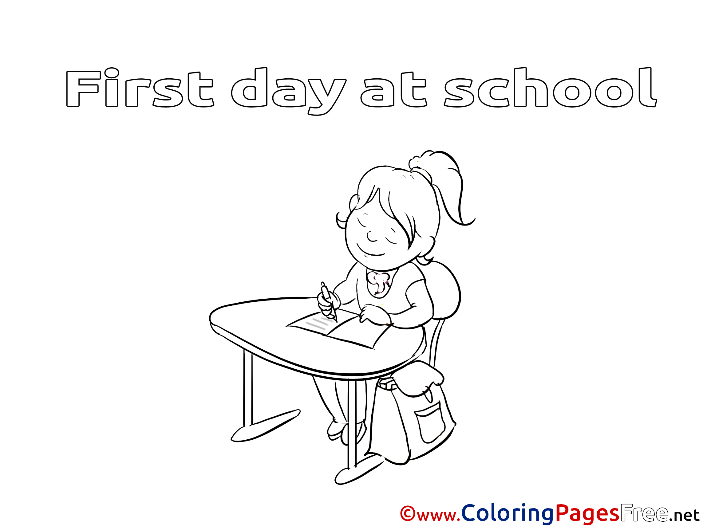 Title of Coloring Sheet: Desk Girl School Colouring Sheet download free