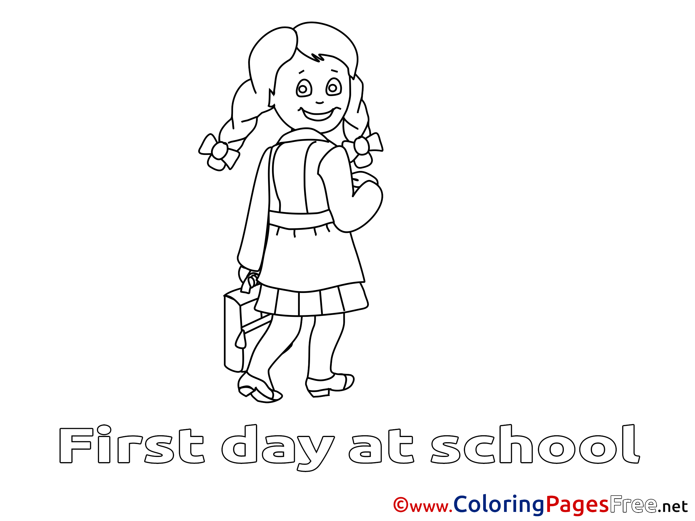 Title of Coloring Sheet: For Kids printable Colouring Page School Girl