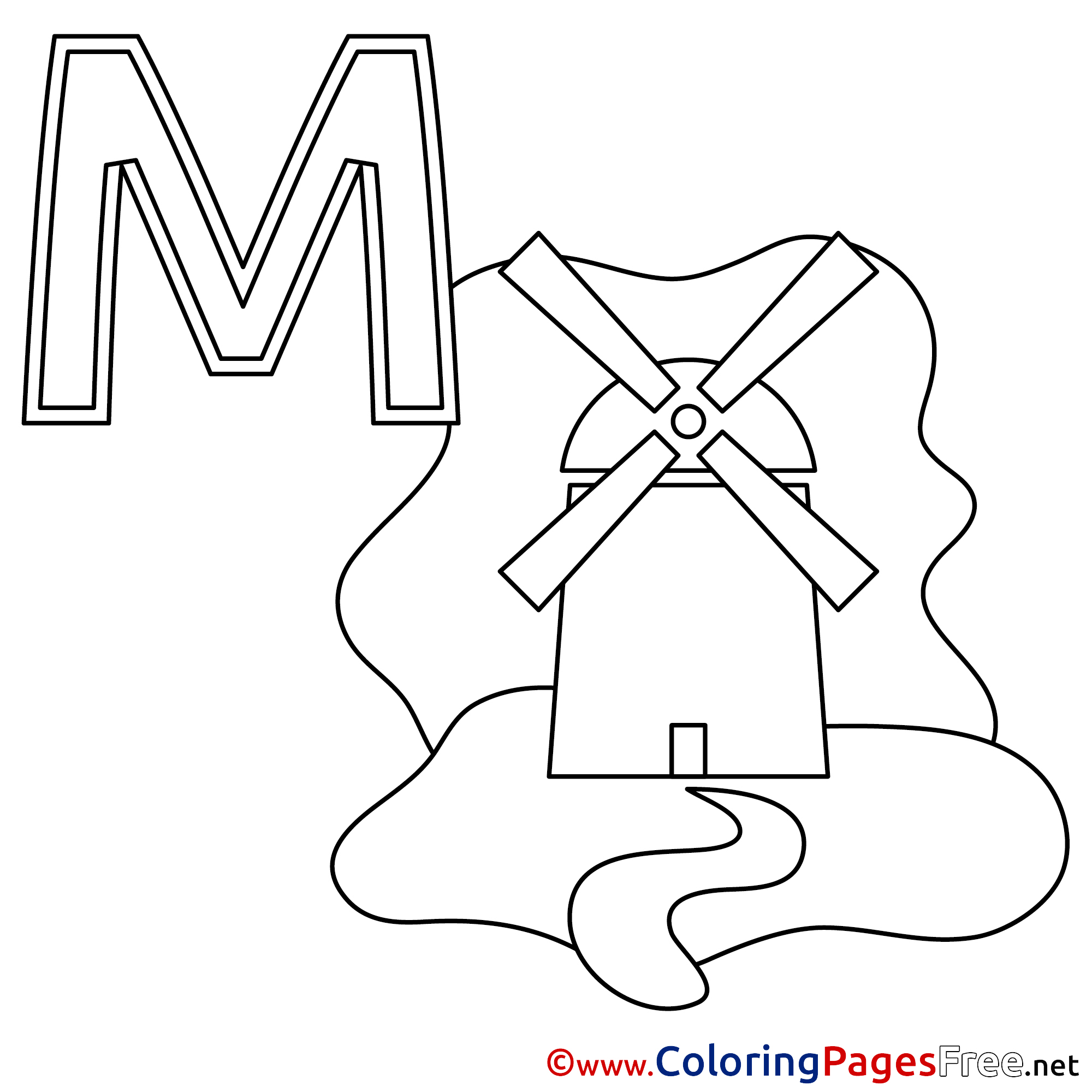 Title of Coloring Sheet: Muehle for Kids Alphabet Colouring Page