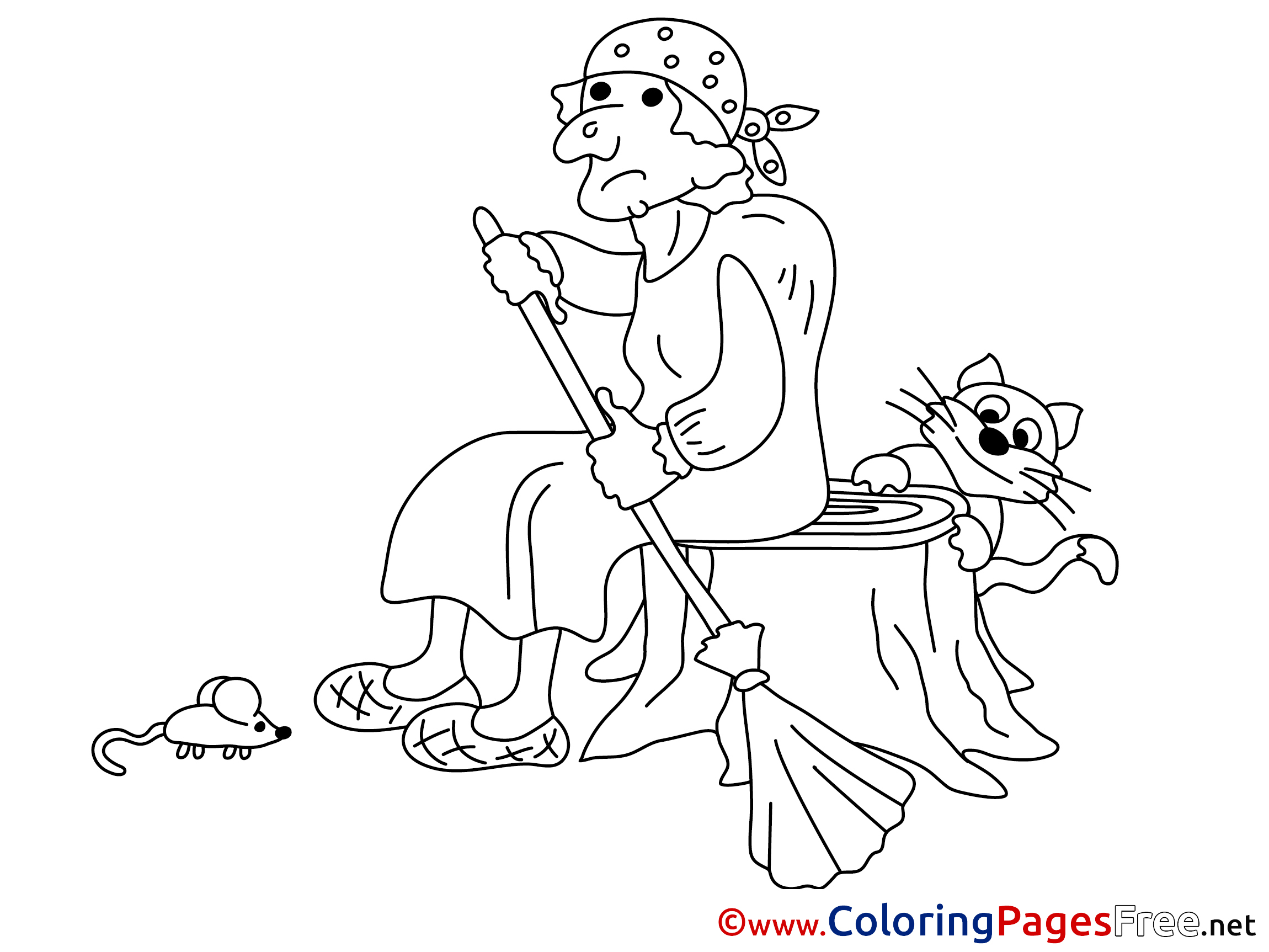 Original-Bild: Cat with Baba Yaga Kids free Coloring Page