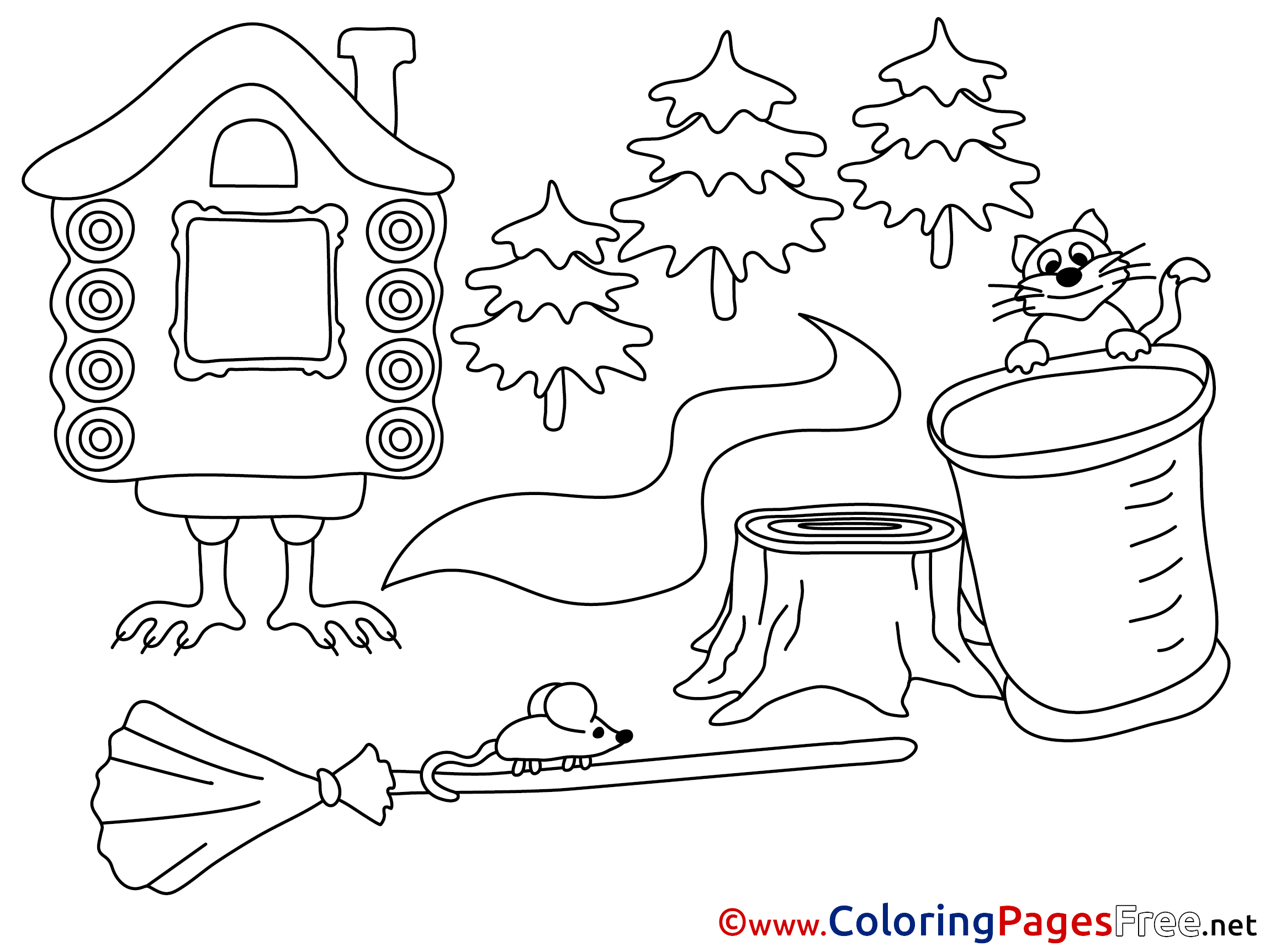 Title of Coloring Sheet: Hut on Chicken Legs for Kids printable Colouring Page