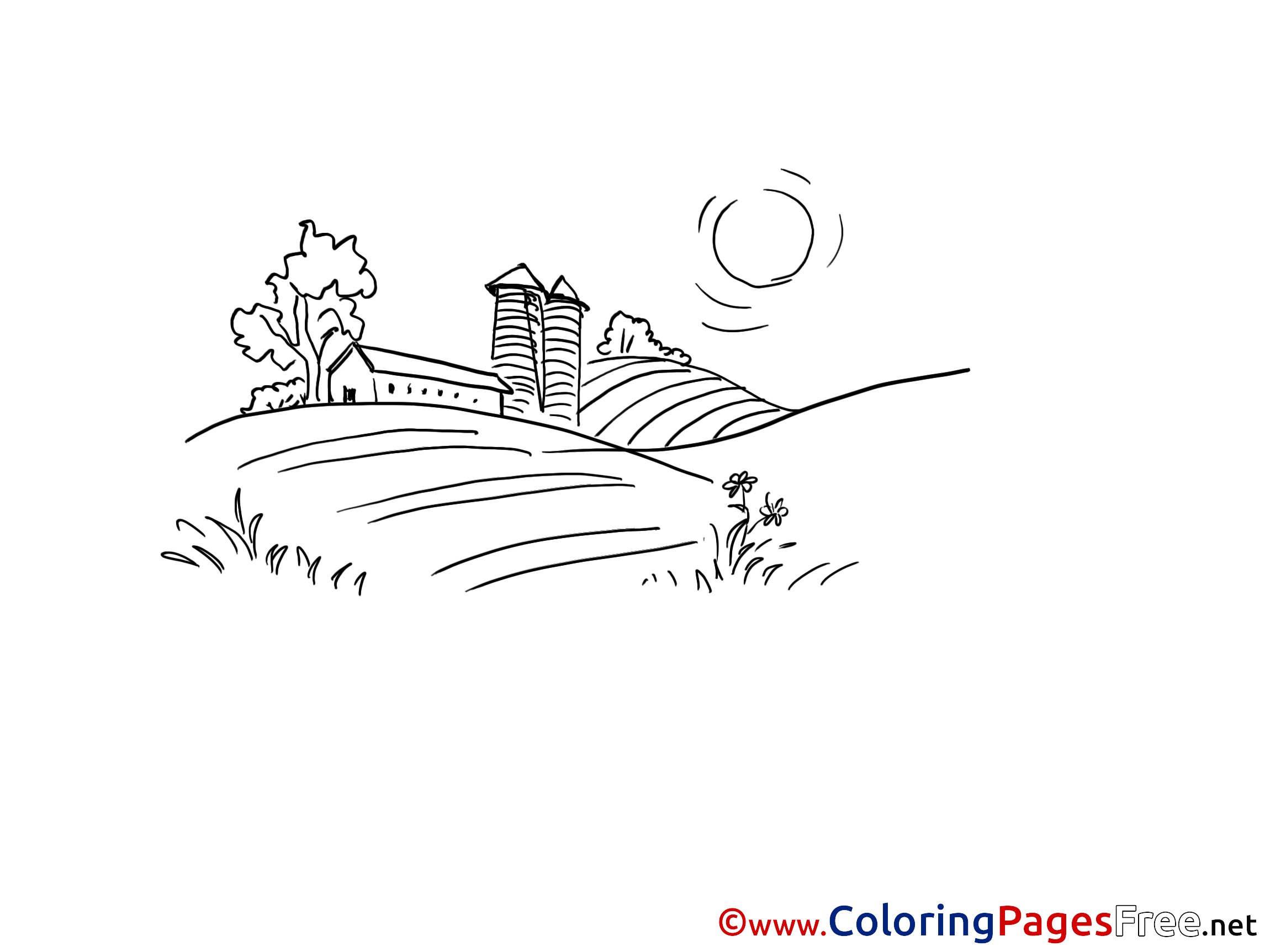 Title of Coloring Sheet: Farm for Kids printable Colouring Page