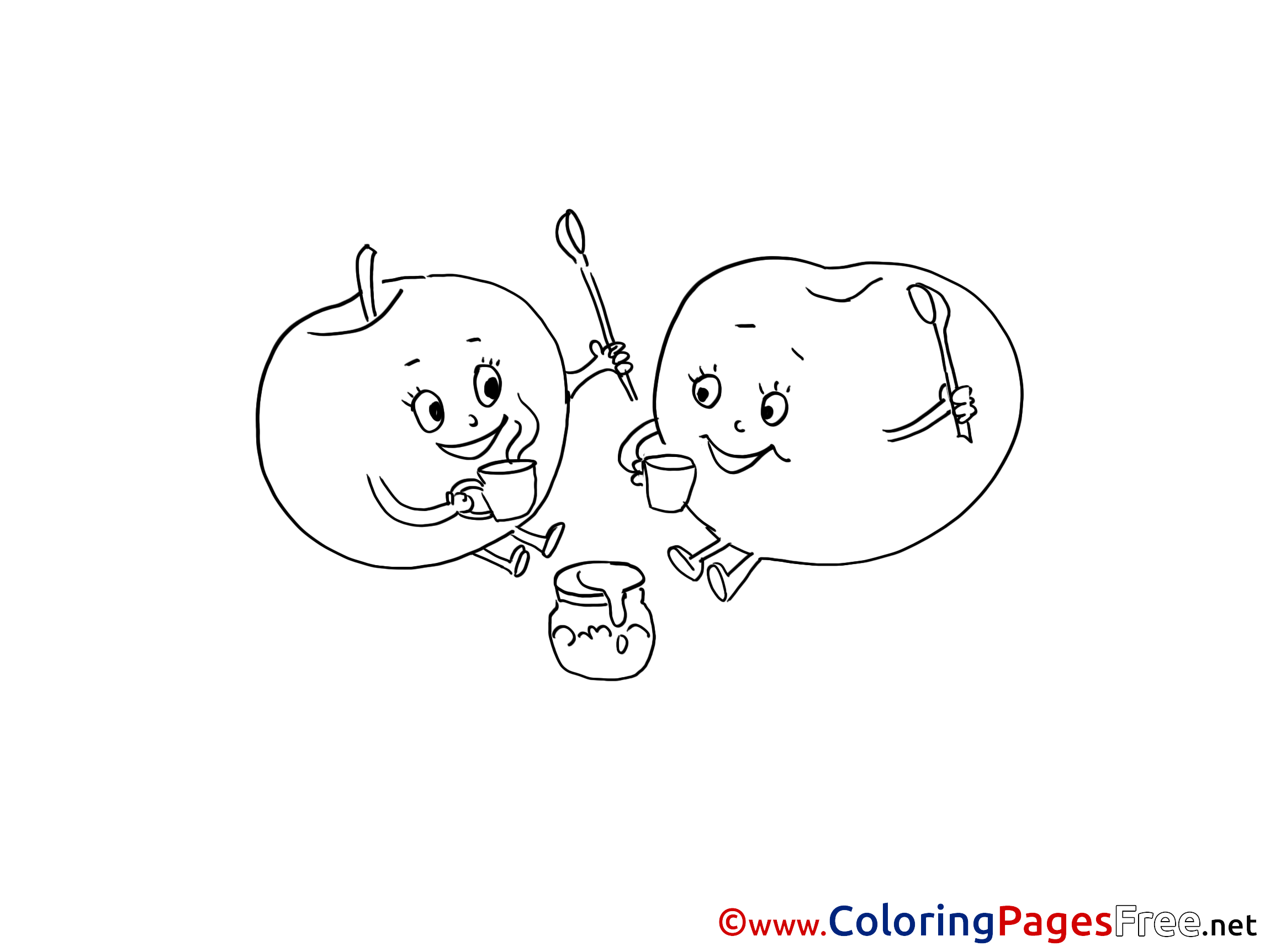 Title of Coloring Sheet: Tea Apples printable Coloring Sheets download