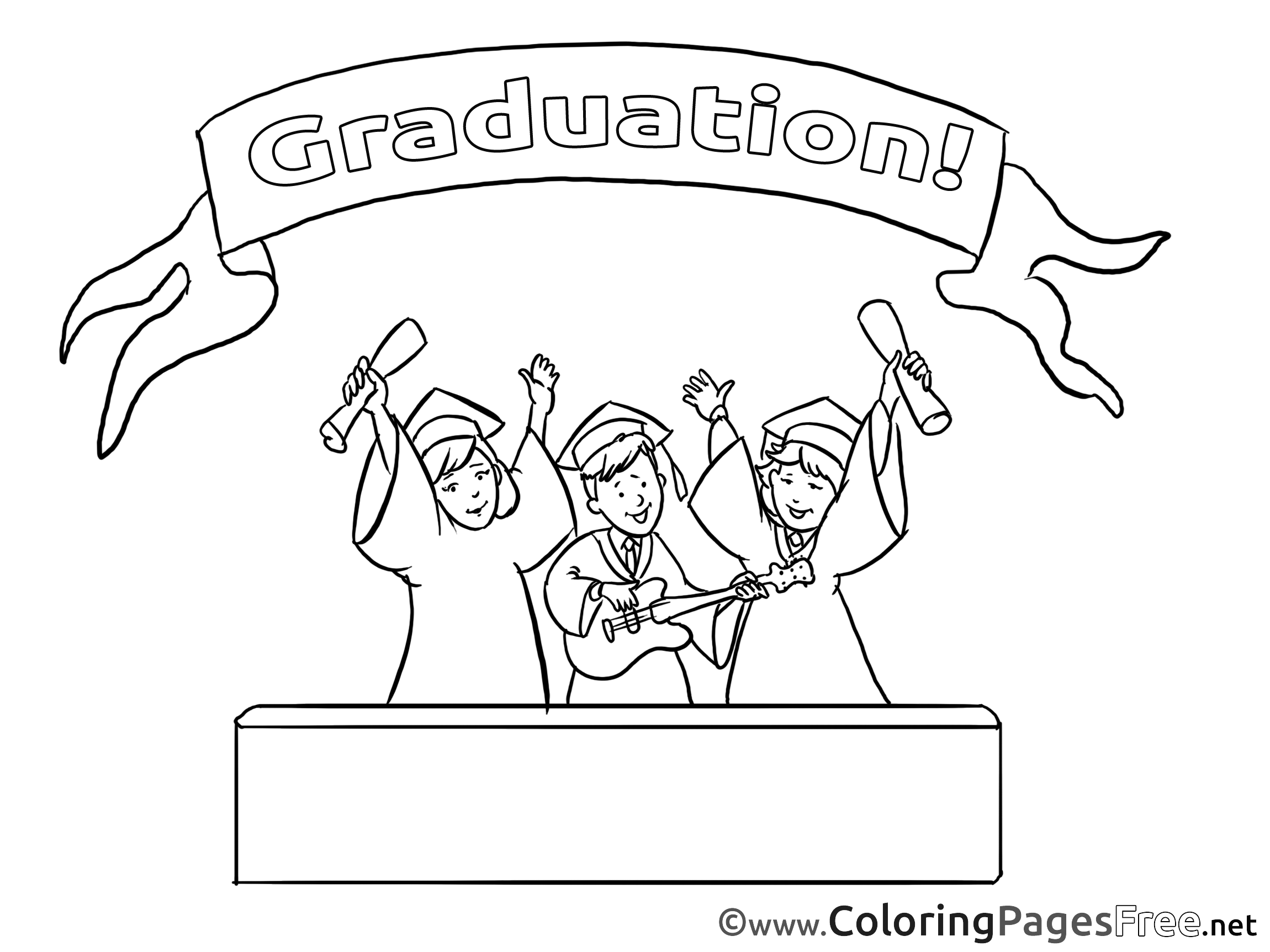 Title of Coloring Sheet: Guitar Graduation Friends Colouring Sheet free