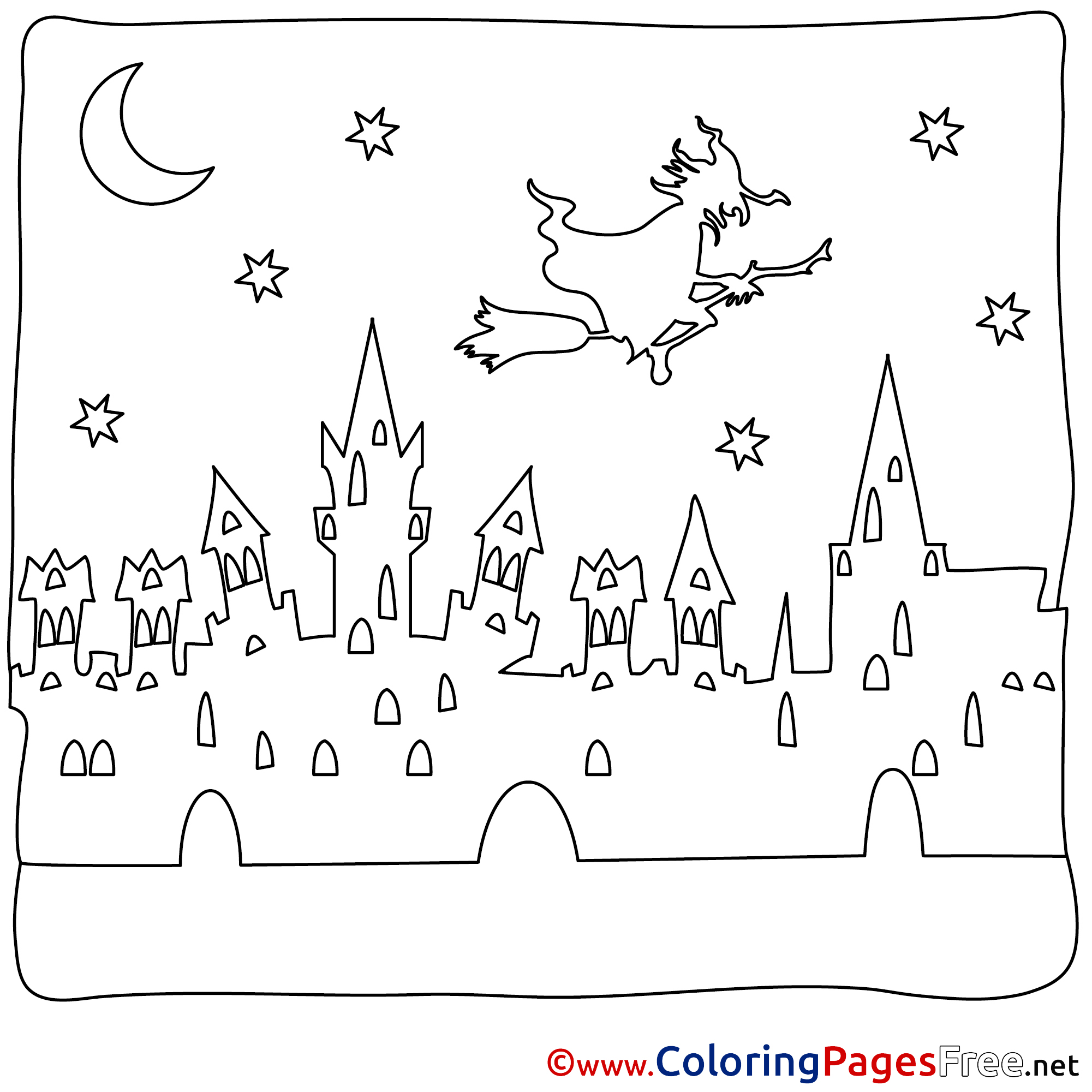 Title of Coloring Sheet: Fortress Colouring Page Night Halloween free