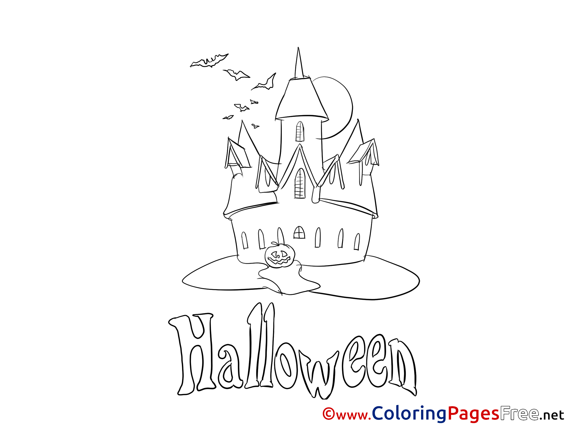Night Castle Kids Halloween Coloring Page