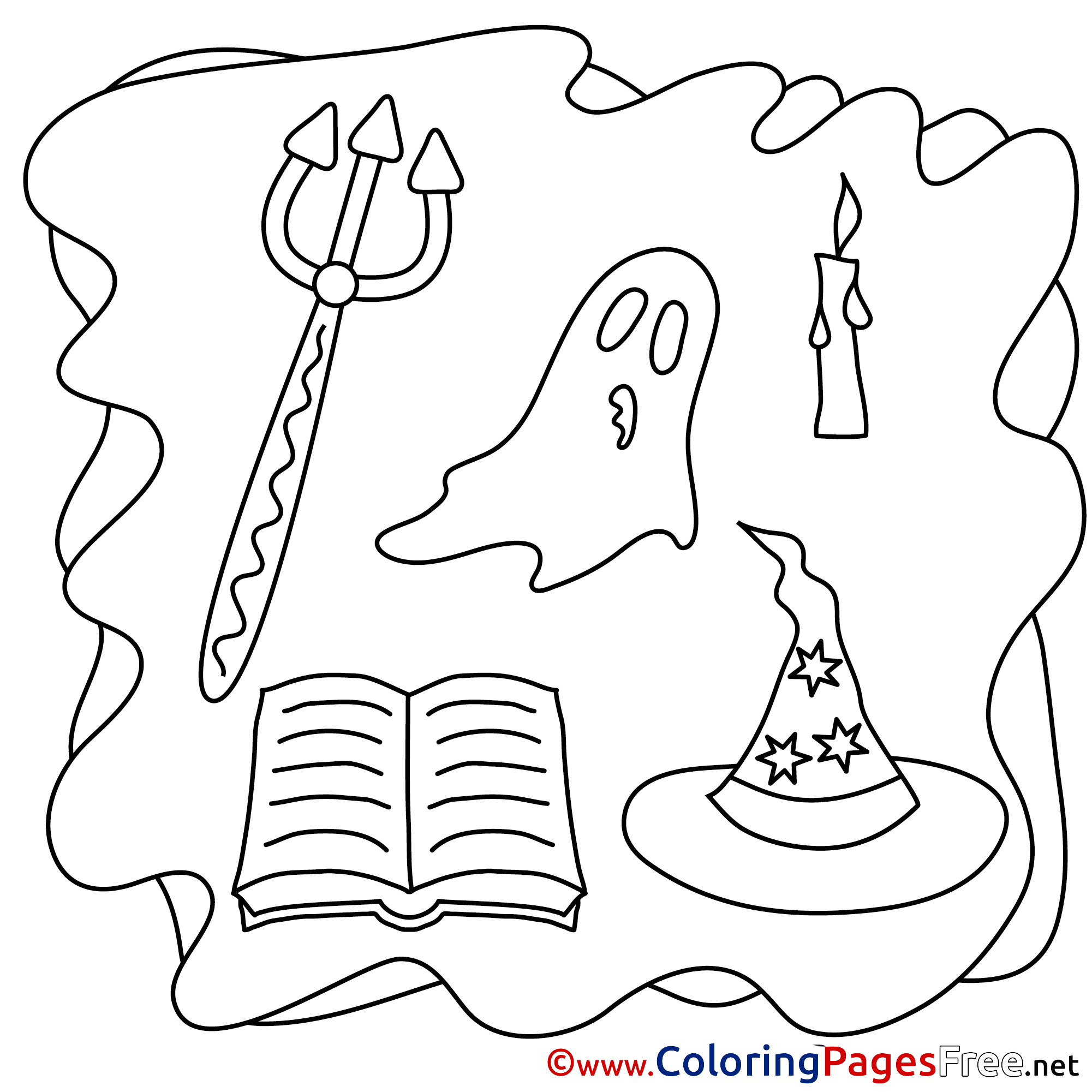 Title of Coloring Sheet: Pitchfork Halloween Coloring Pages download Ghost