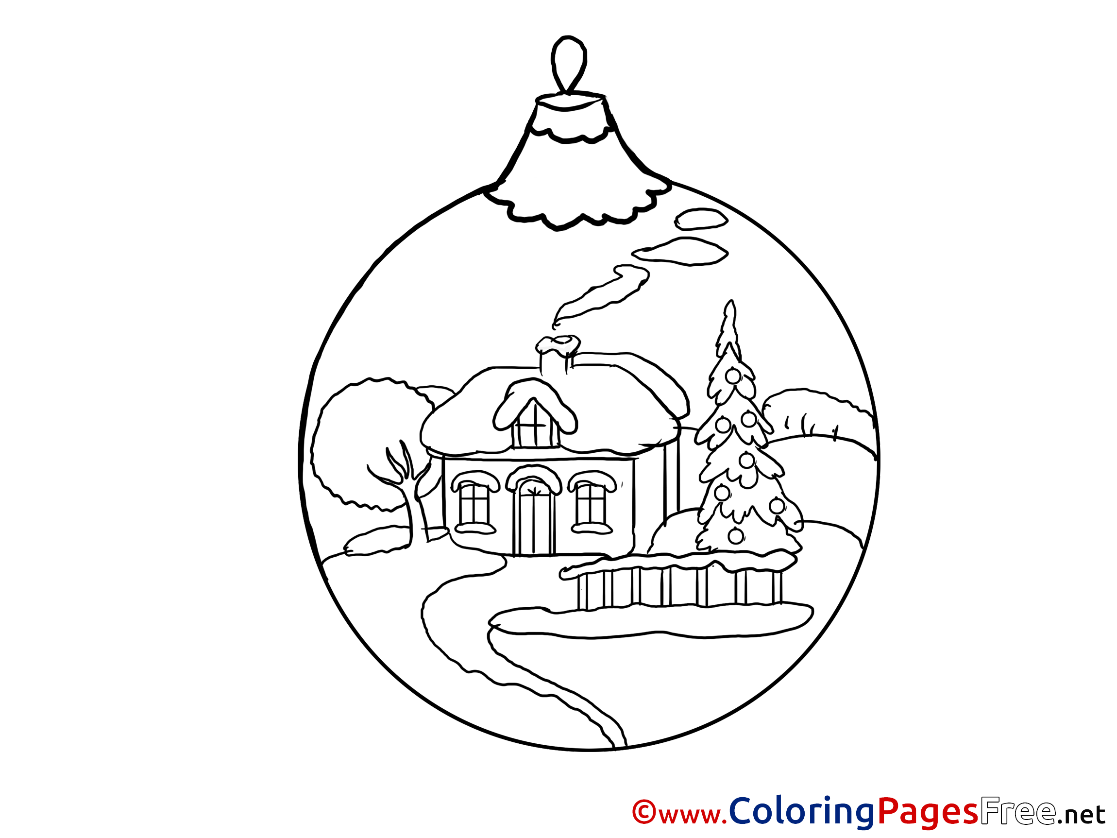 Title of Coloring Sheet: Ball Kids New Year House Coloring Page