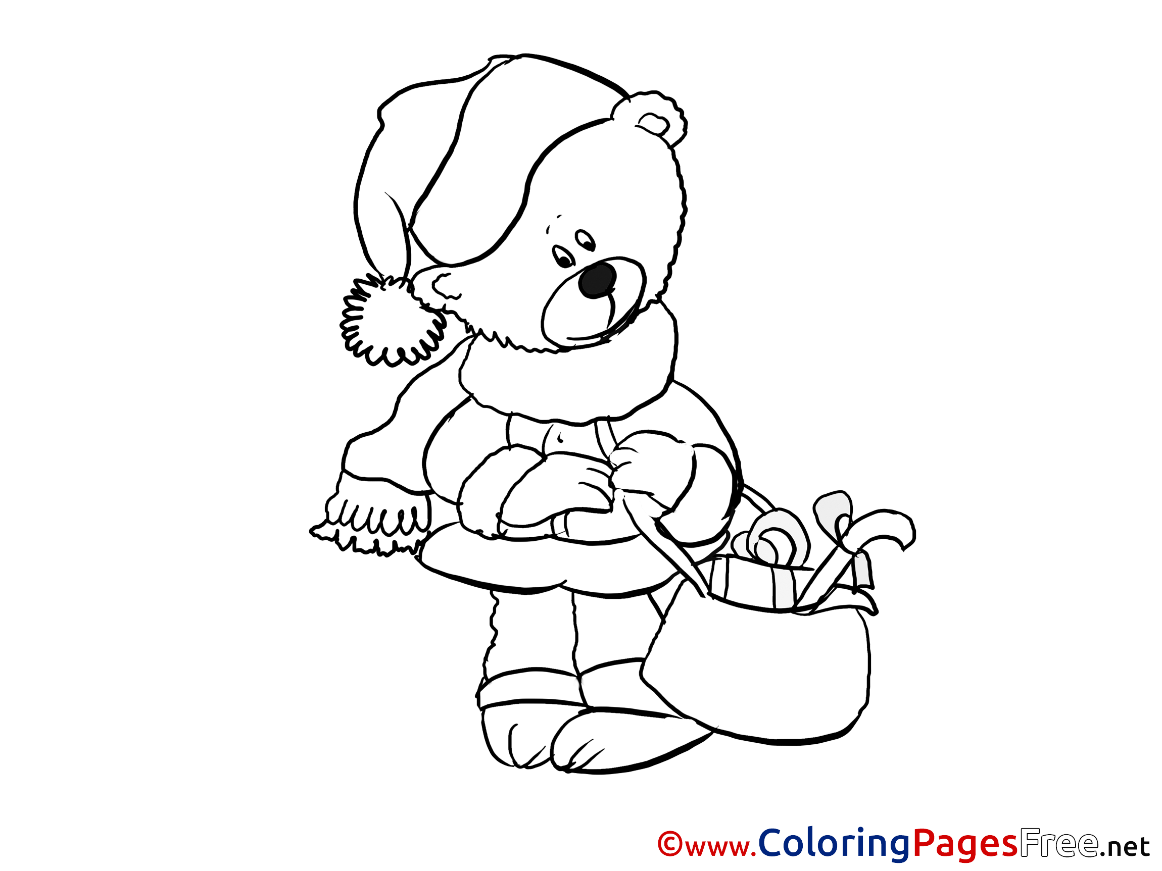Title of Coloring Sheet: Bear printable New Year Coloring Sheets