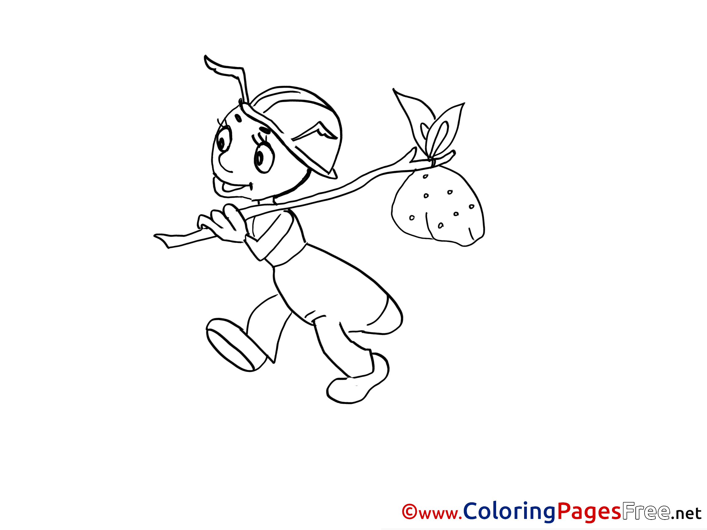 Ant with Bag free printable Coloring Sheets