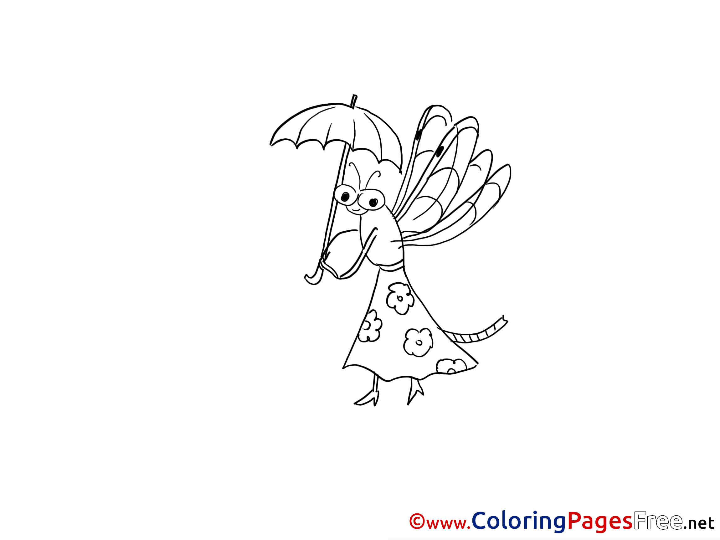 Title of Coloring Sheet: Dragonfly with Umbrella Coloring Sheets download free