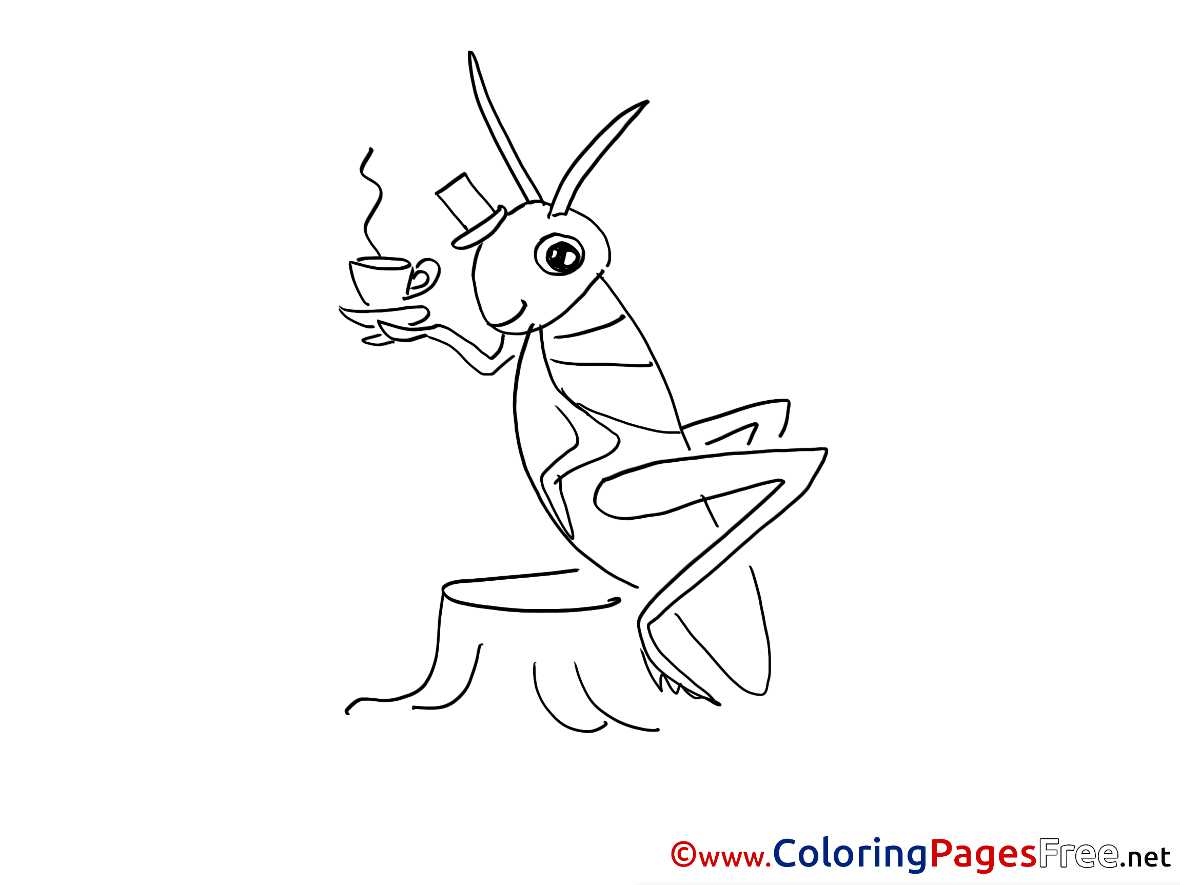 Original-Bild: Grasshopper Cup of Tea Children Coloring Pages free