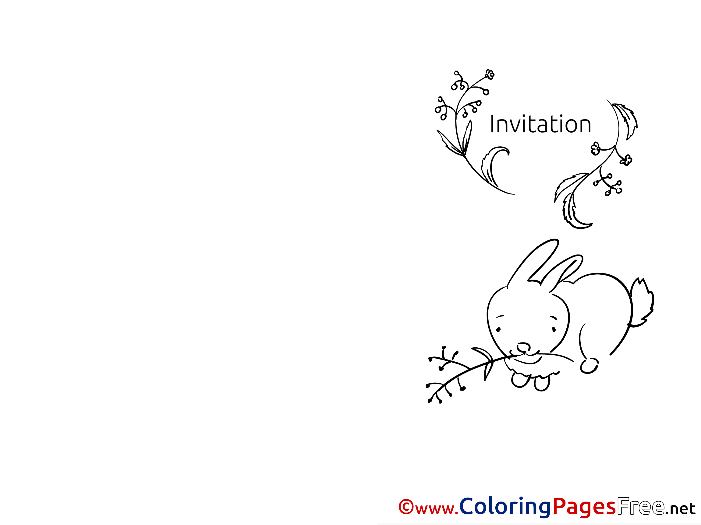 Title of Coloring Sheet: Hare eats Grass free Colouring Page Invitation