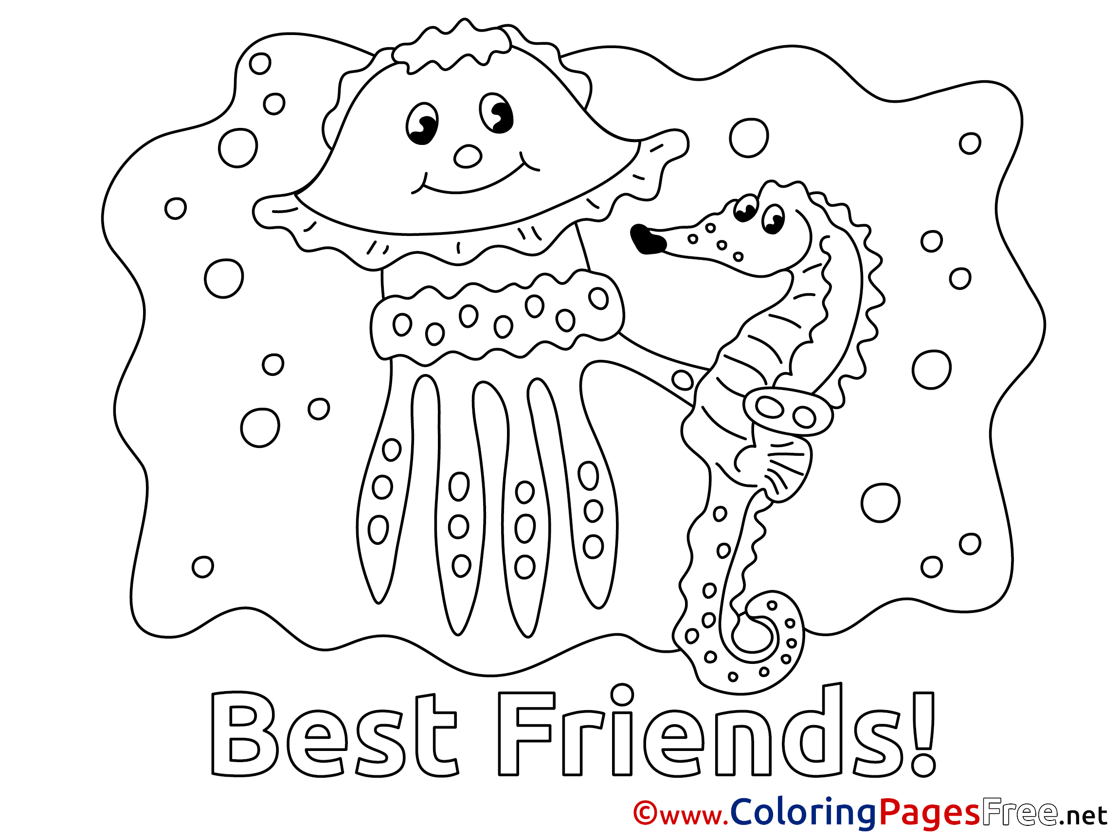 Jellyfish Friends Children Coloring Pages free