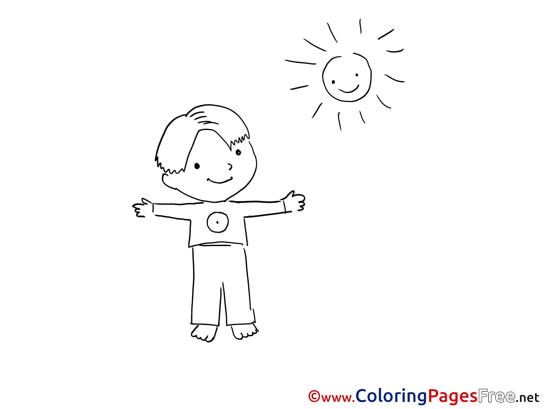 Sun and Boy download Colouring Sheet free