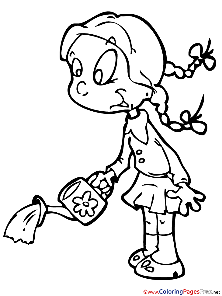 Title of Coloring Sheet: Watering Can Coloring Sheets Girl download free