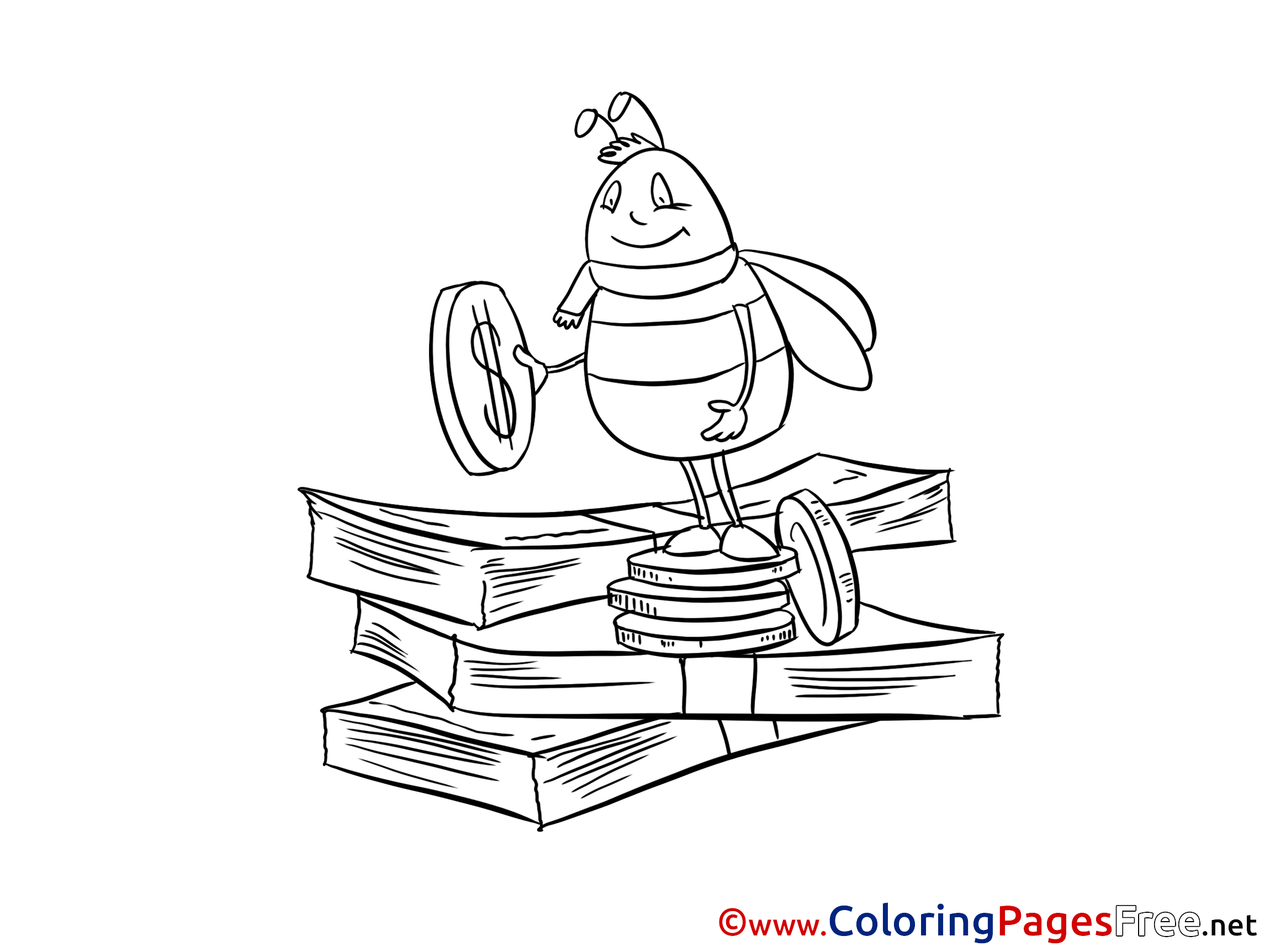 Title of Coloring Sheet: Bee Money for Children free Coloring Pages
