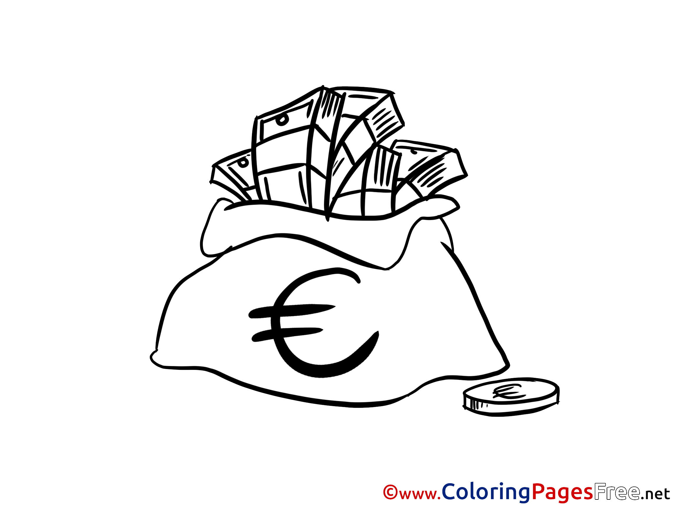 Euro Bag Money free Colouring Page download