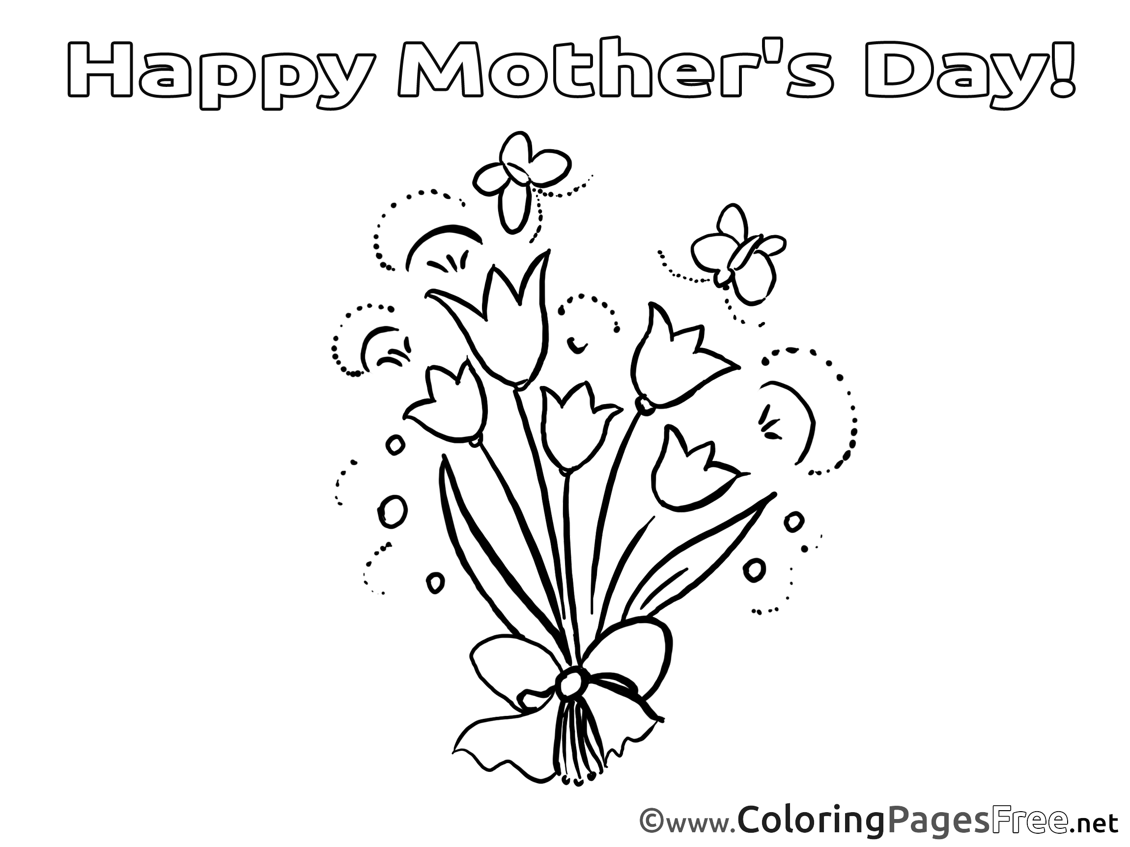 Title of Coloring Sheet: Bouquet Flowers printable Mother's Day Coloring Sheets