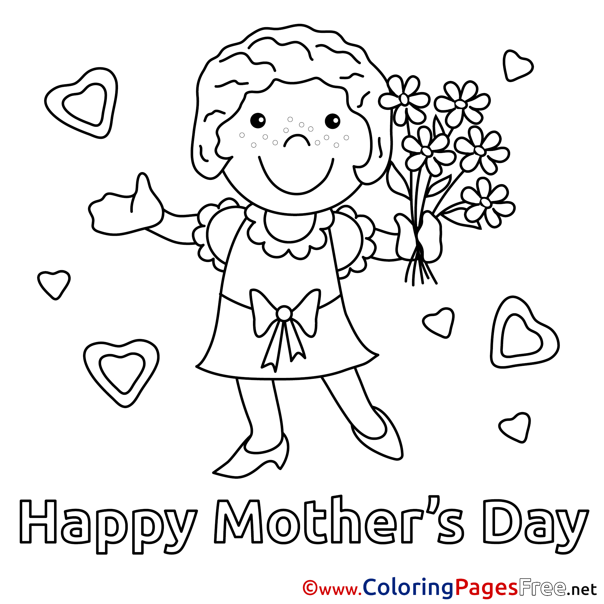 Title of Coloring Sheet: Girl Felicitation free Mother's Day Coloring Sheets
