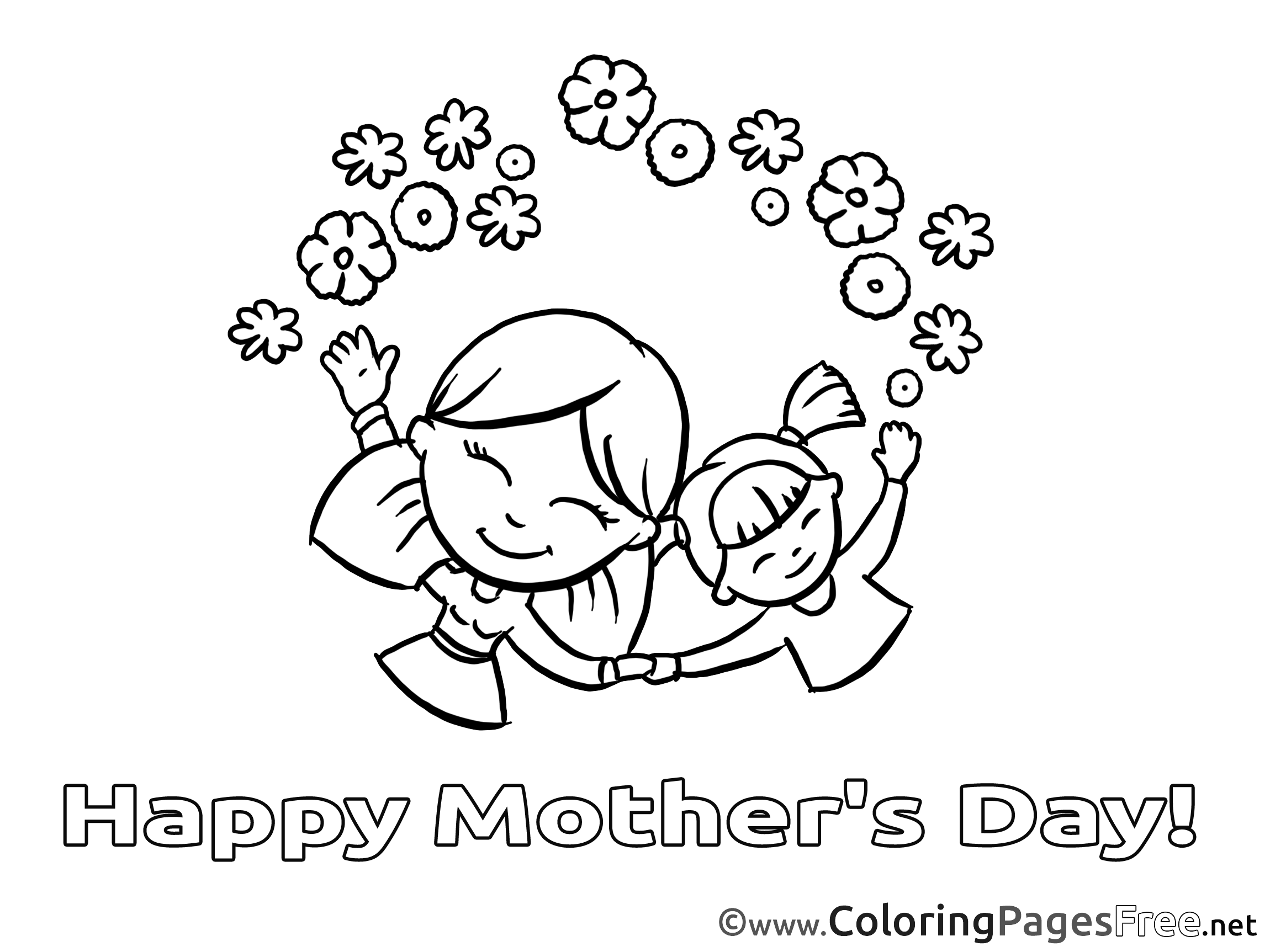 Title of Coloring Sheet: Kids Flowers Mother's Day Colouring Page