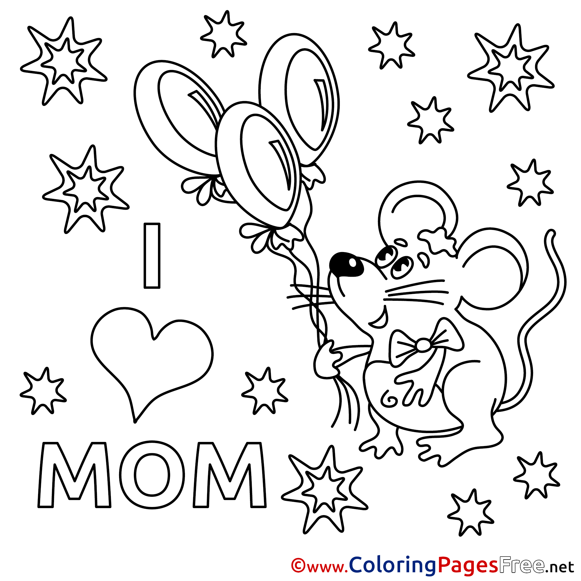 Mouse Balloons Colouring Page Mother's Day free