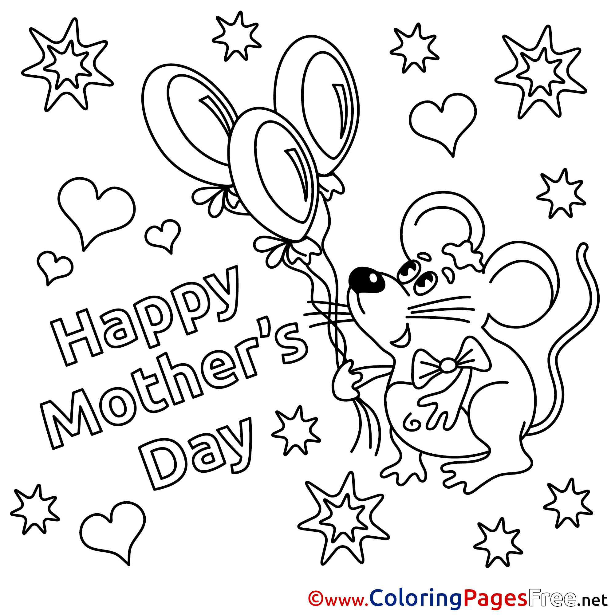 Title of Coloring Sheet: Mouse Holiday for Kids Mother's Day Balloons Colouring Page