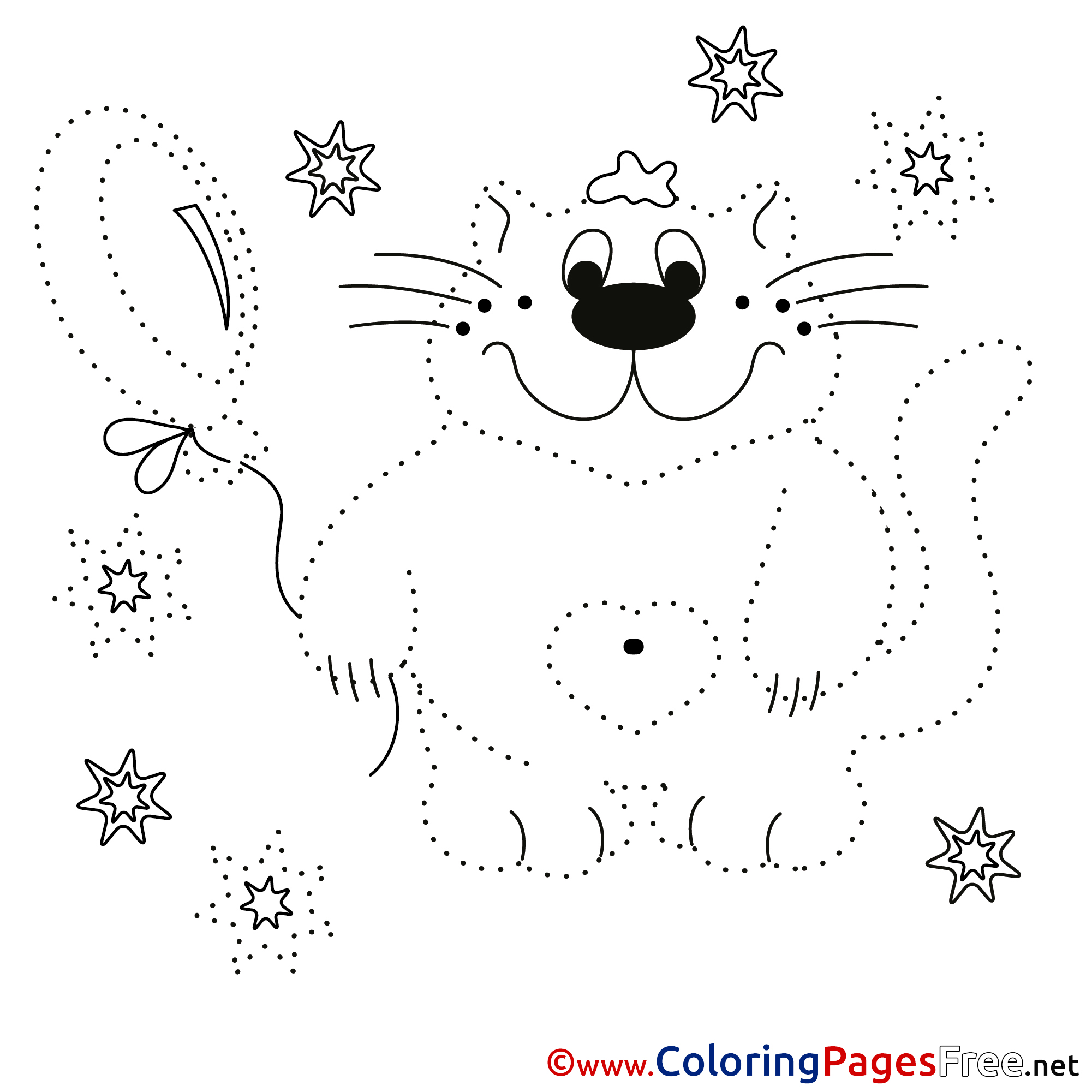Cat Painting by Number Colouring Sheet free
