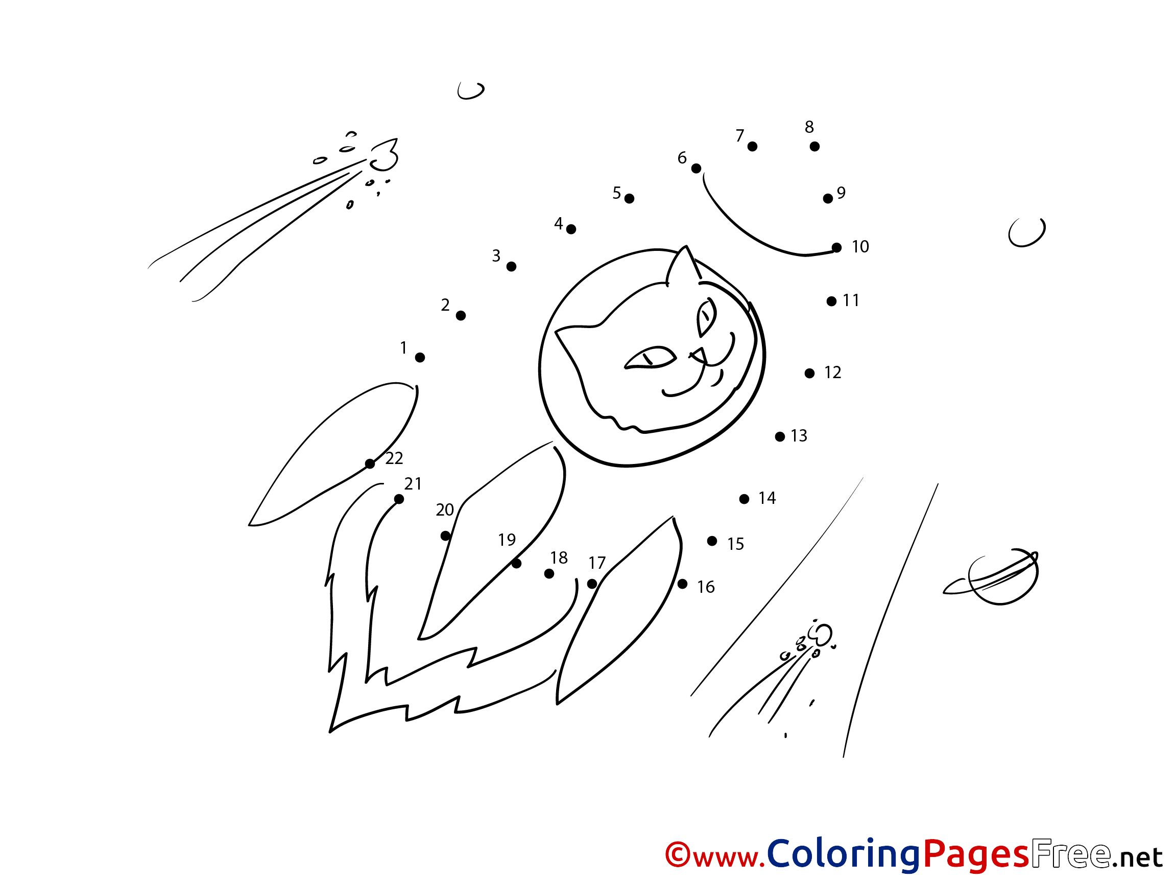 Rocket Cat free Painting by Number Coloring Sheets