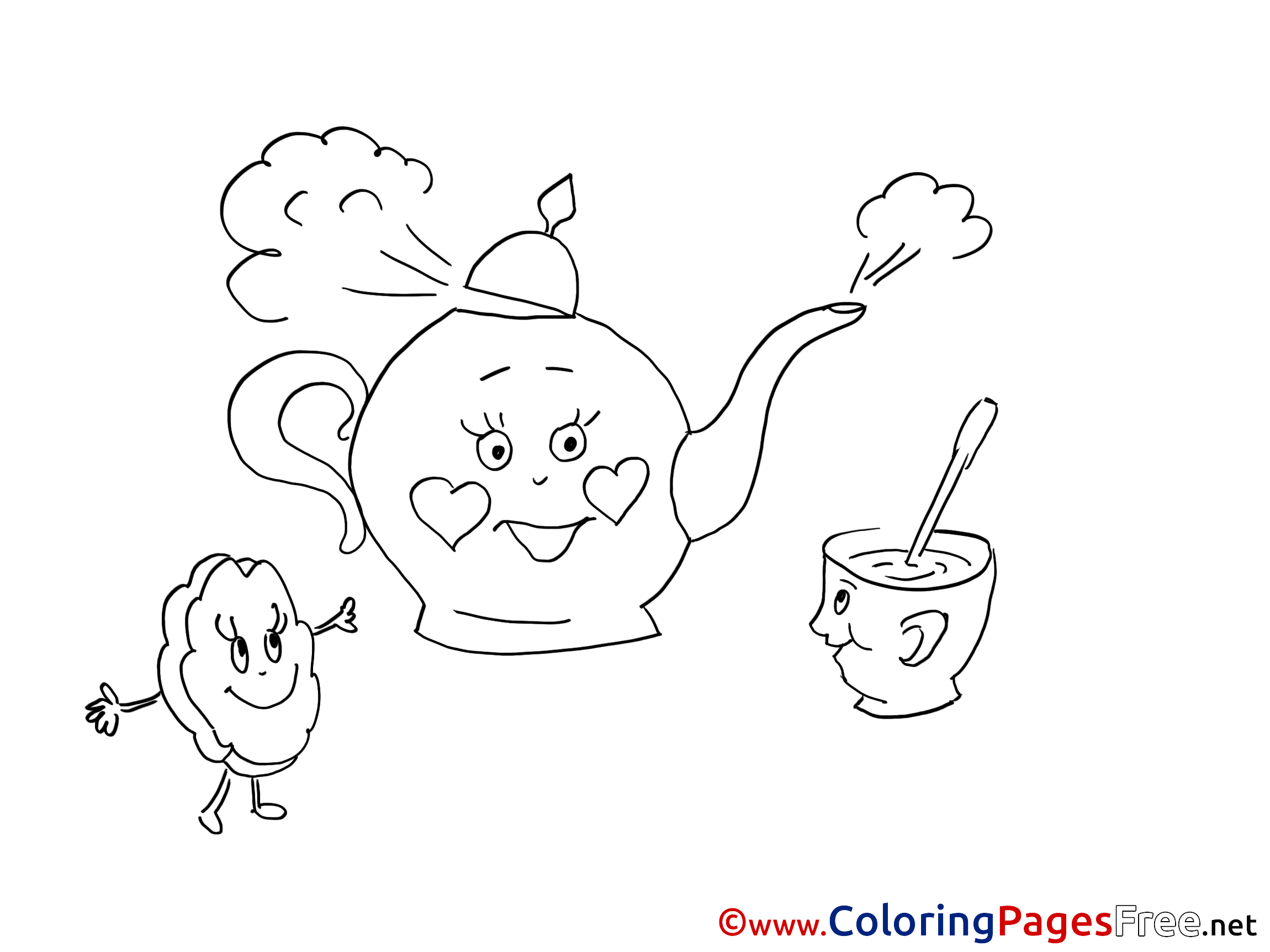 Title of Coloring Sheet: Kettle Cookie for Kids printable Colouring Page