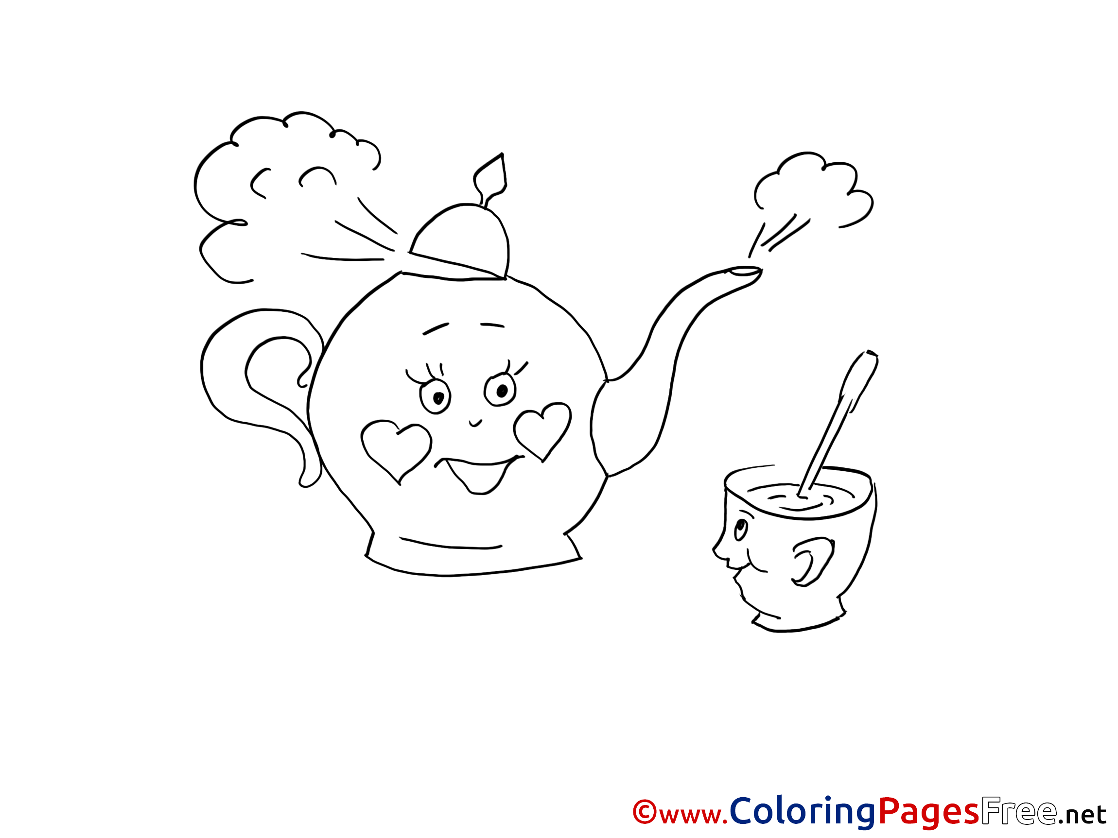 Kettle Cup of Tea for free Coloring Pages download