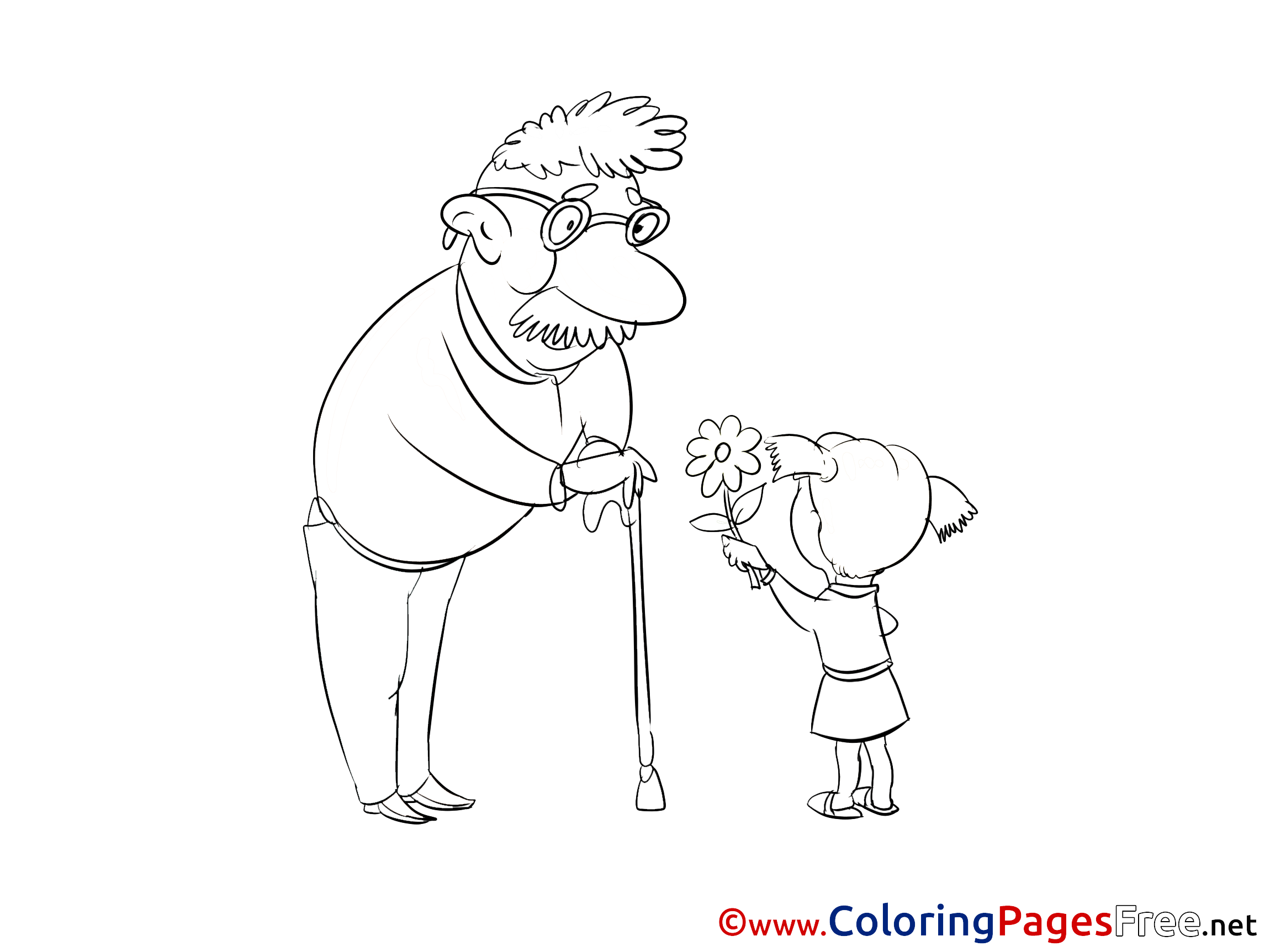 Title of Coloring Sheet: Grandfather and Girl for Children free Coloring Pages