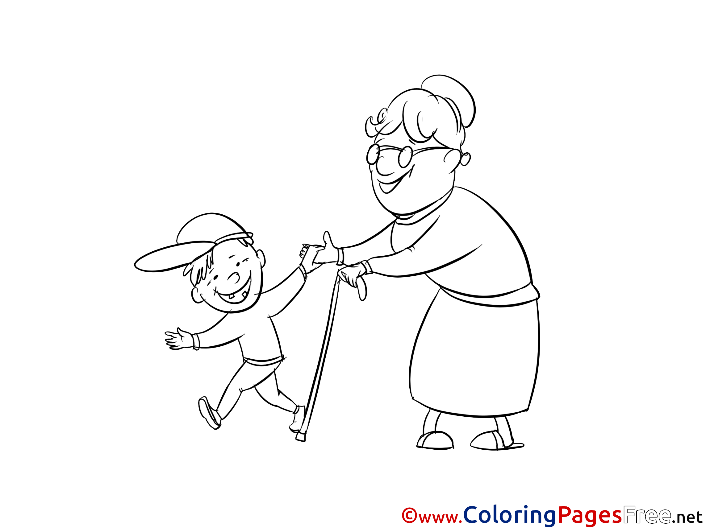 Title of Coloring Sheet: Grandmother with Boy download Colouring Sheet free